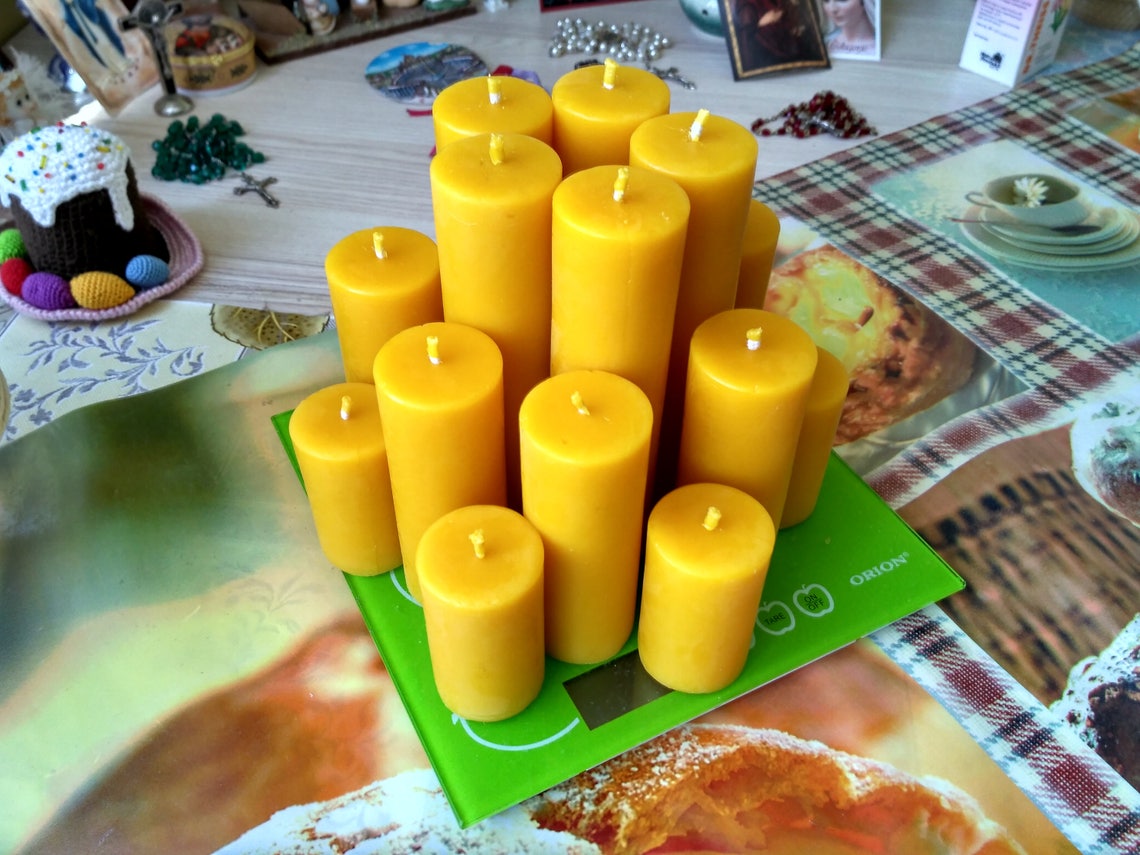 Set consists of 15 beeswax pillar candles