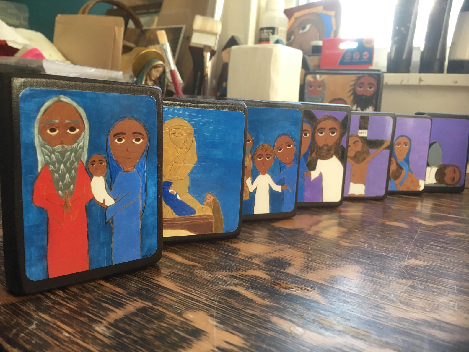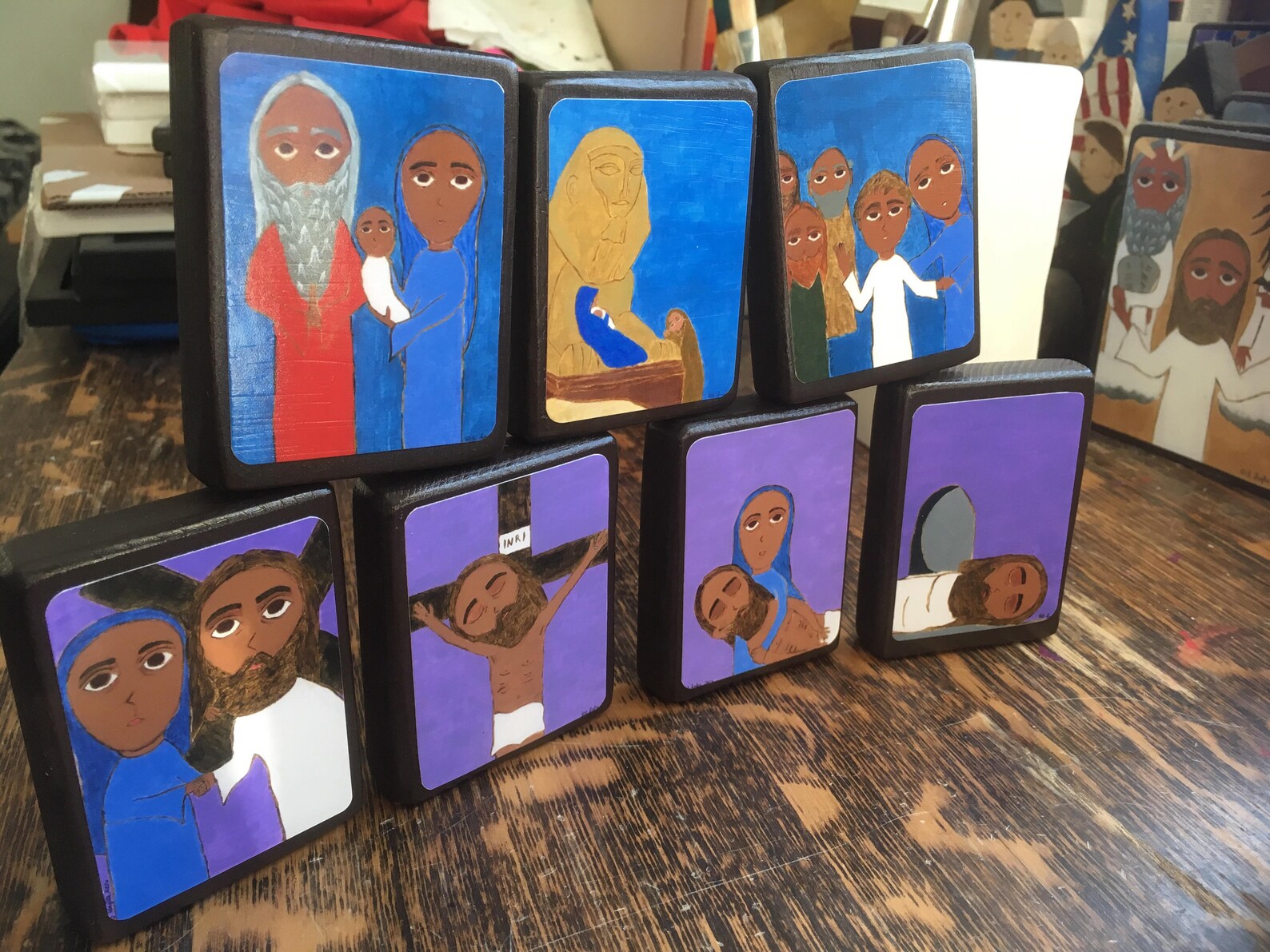 2.5 X 3.5 inch ish Seven Sorrows of Mary Byzantine Folk Icons on Wood