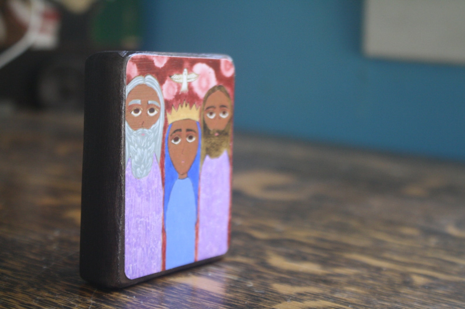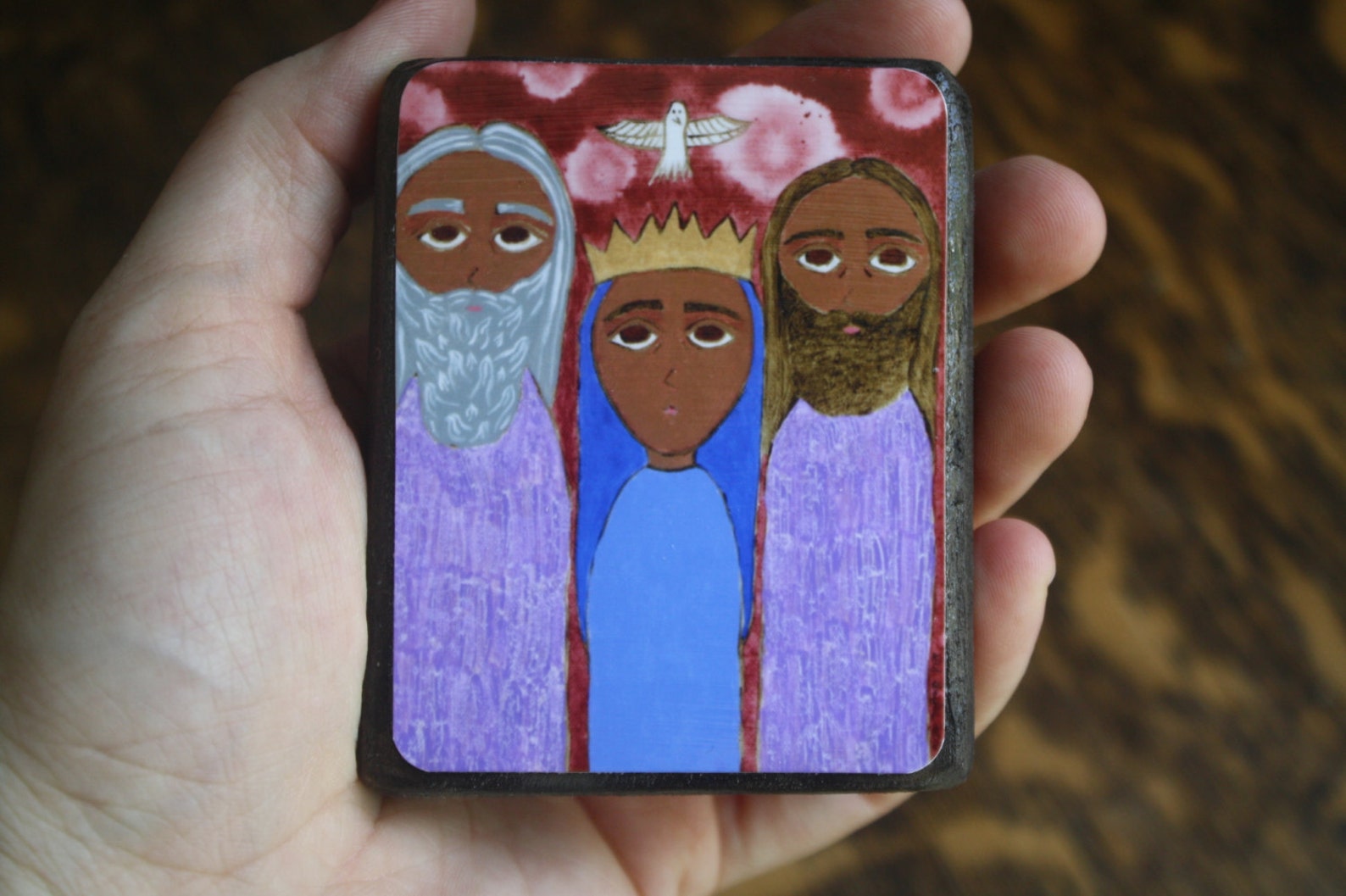 2.5 X 3.5 inch-ish The Coronation of the Blessed Mother Folk/ Byzantine icon print on wood