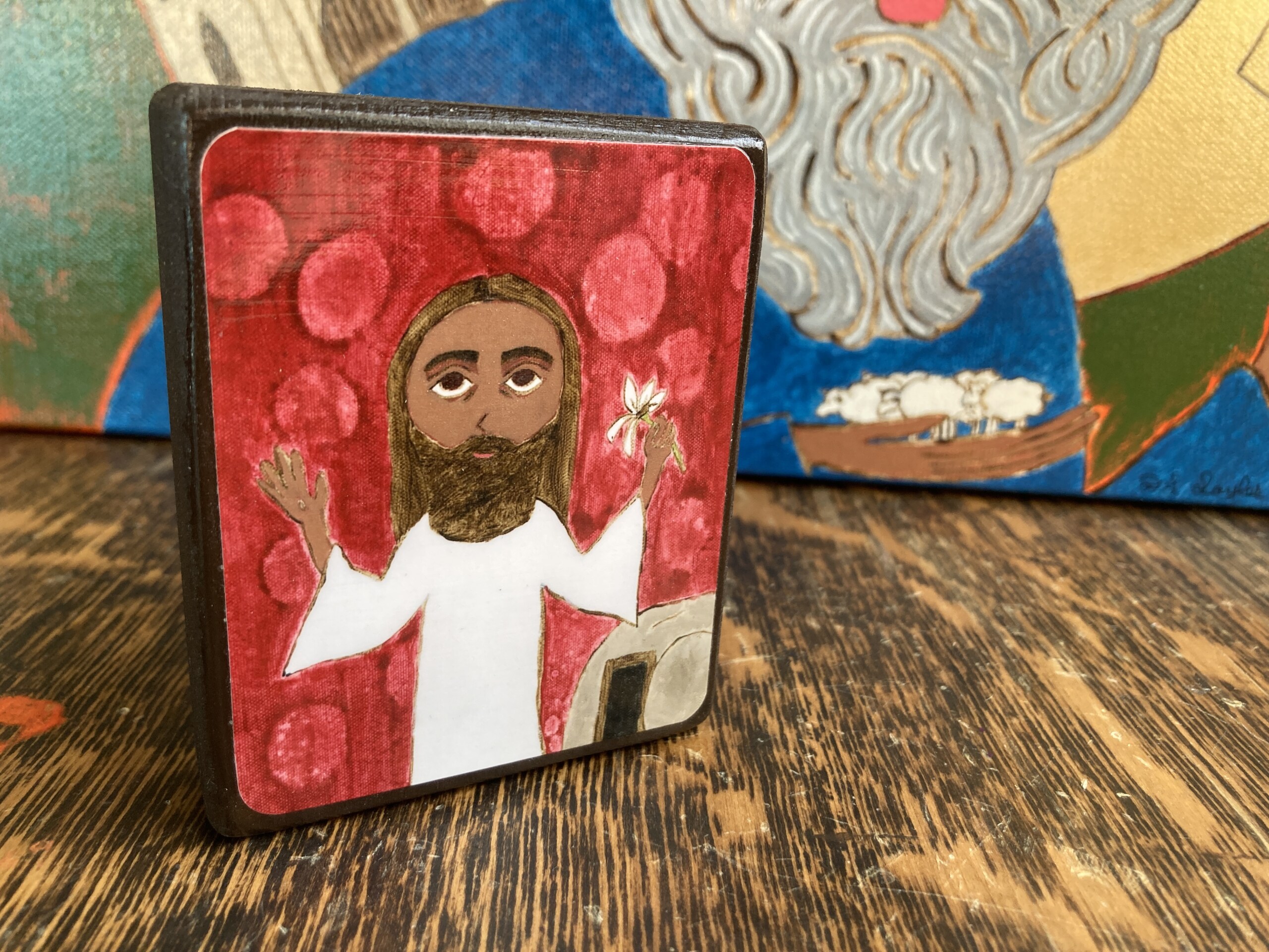 2.5 X 3.5 inch-ish The Resurrection Folk/ Byzantine icon print on wood by DL Sayles