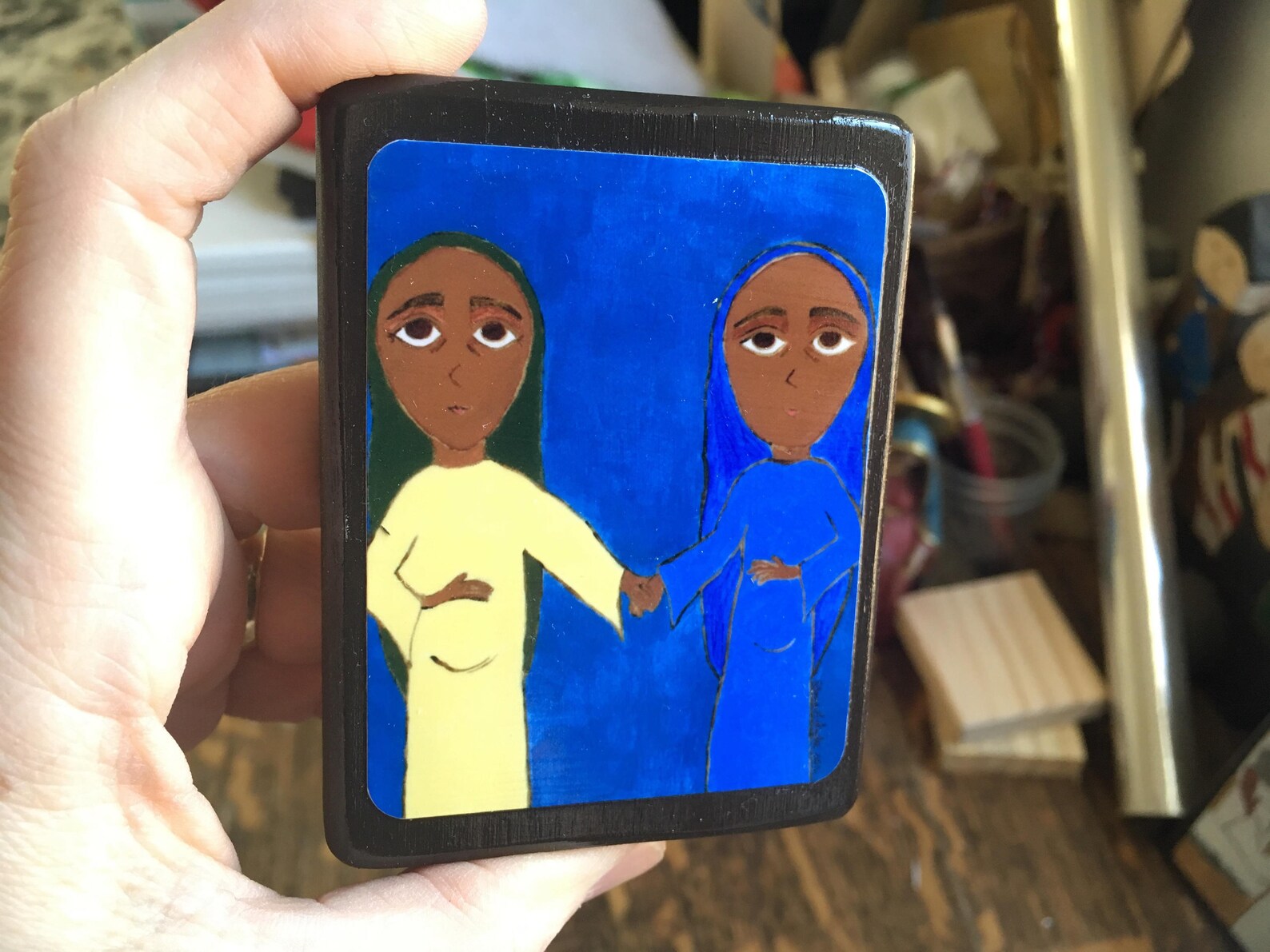 2.5 X 3.5 ish The Visitation Byzantine Folk style icon on wood by DL Sayles