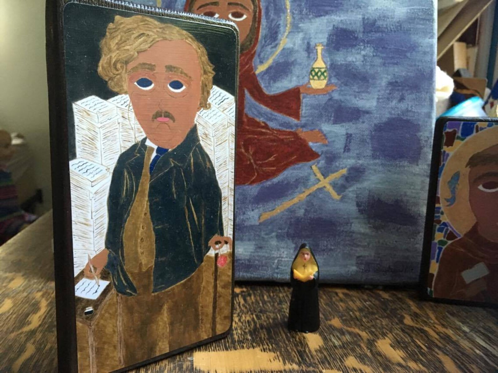 3.5 X 7 ish inches GK Chesterton Byzantine Folk Style Icon Print on Wood