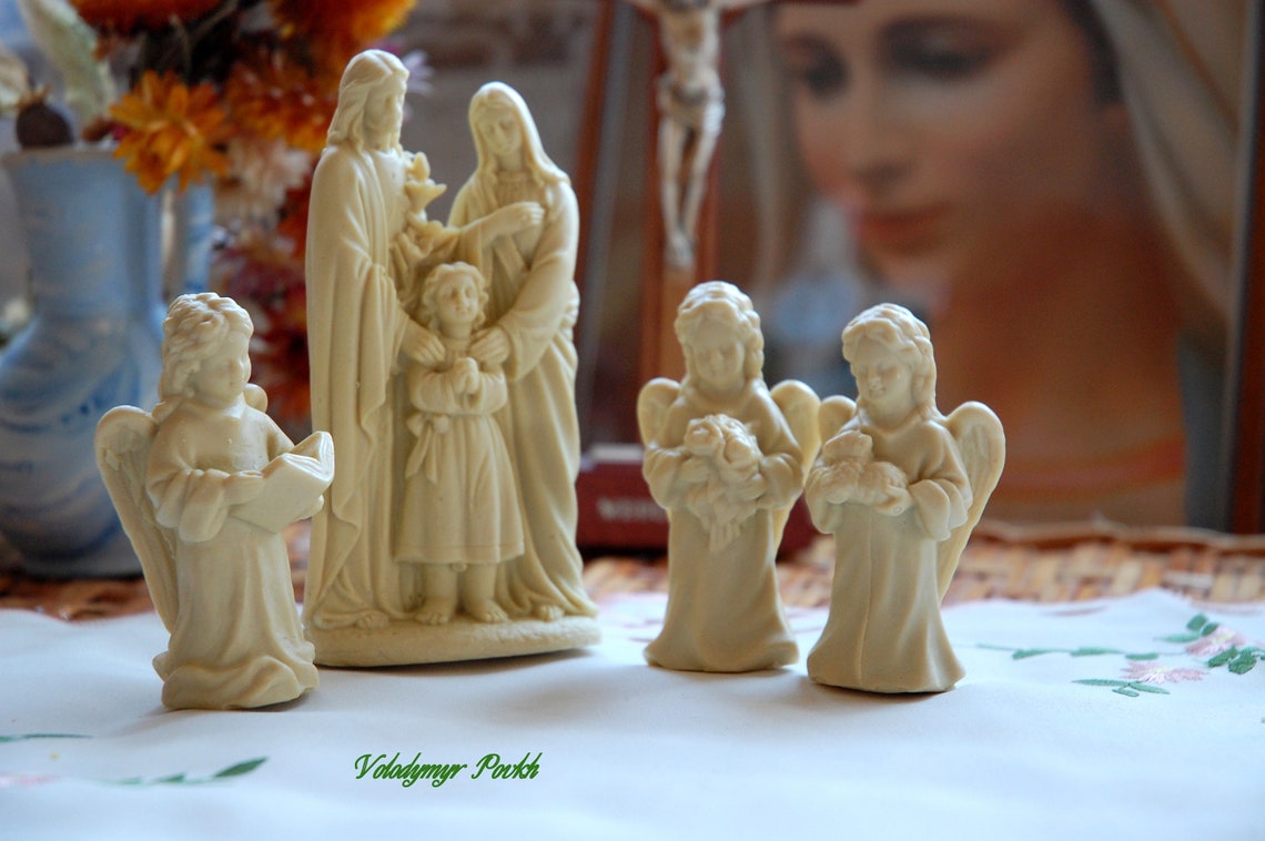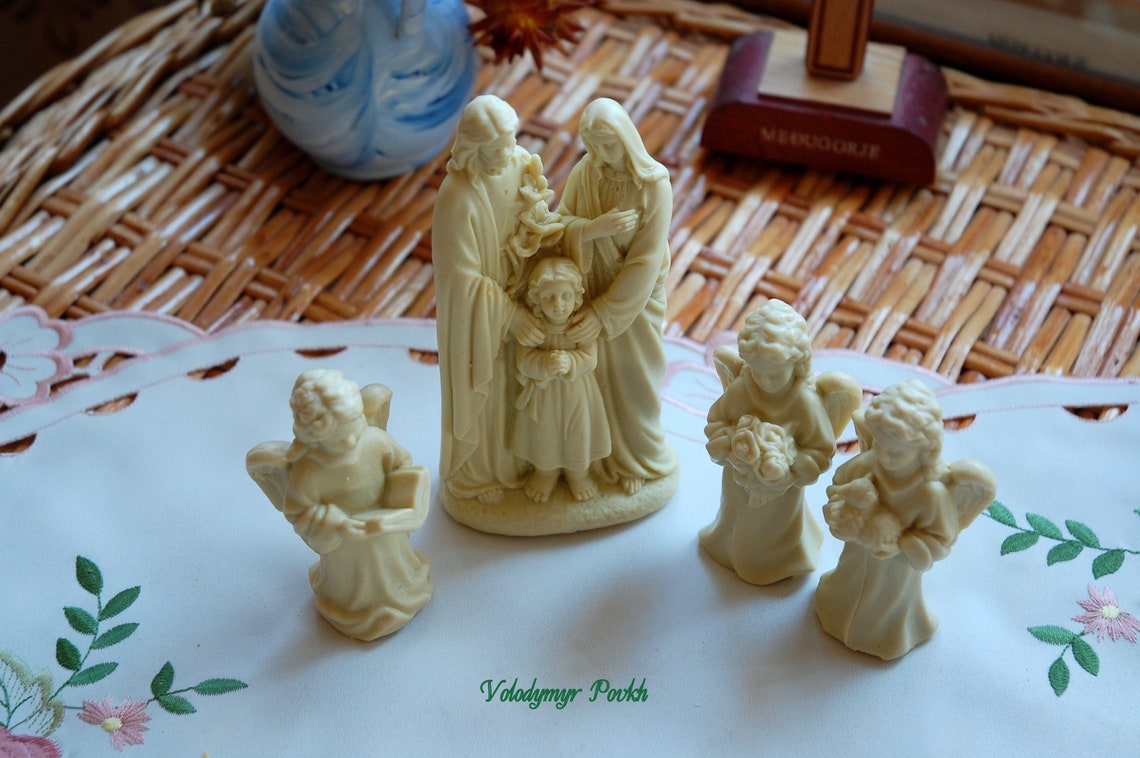 Set consists of 3 Christmas angels figures and Holy Family statue made from pure beeswax + non toxic dyes.All figures have a nice scent of natural beeswax.