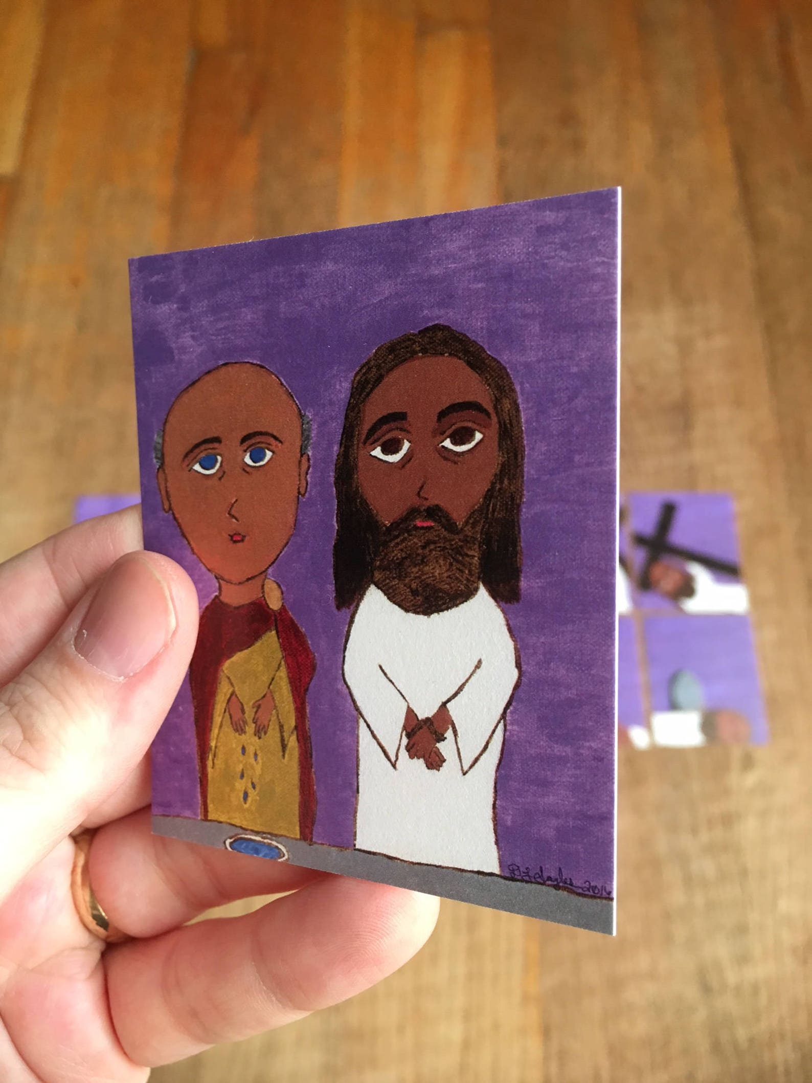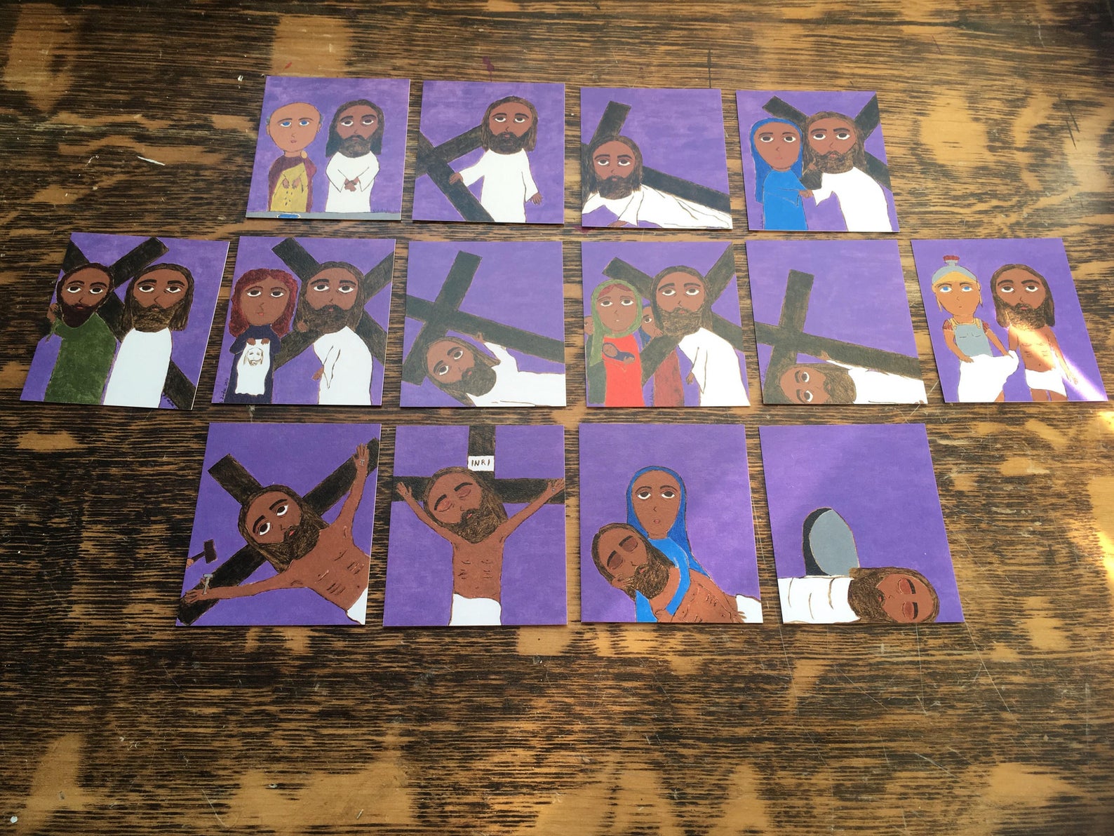 3 in X 2.5 in ish Set of Stations of the Cross Byzantine Icon Folk Style Art Prints Purple