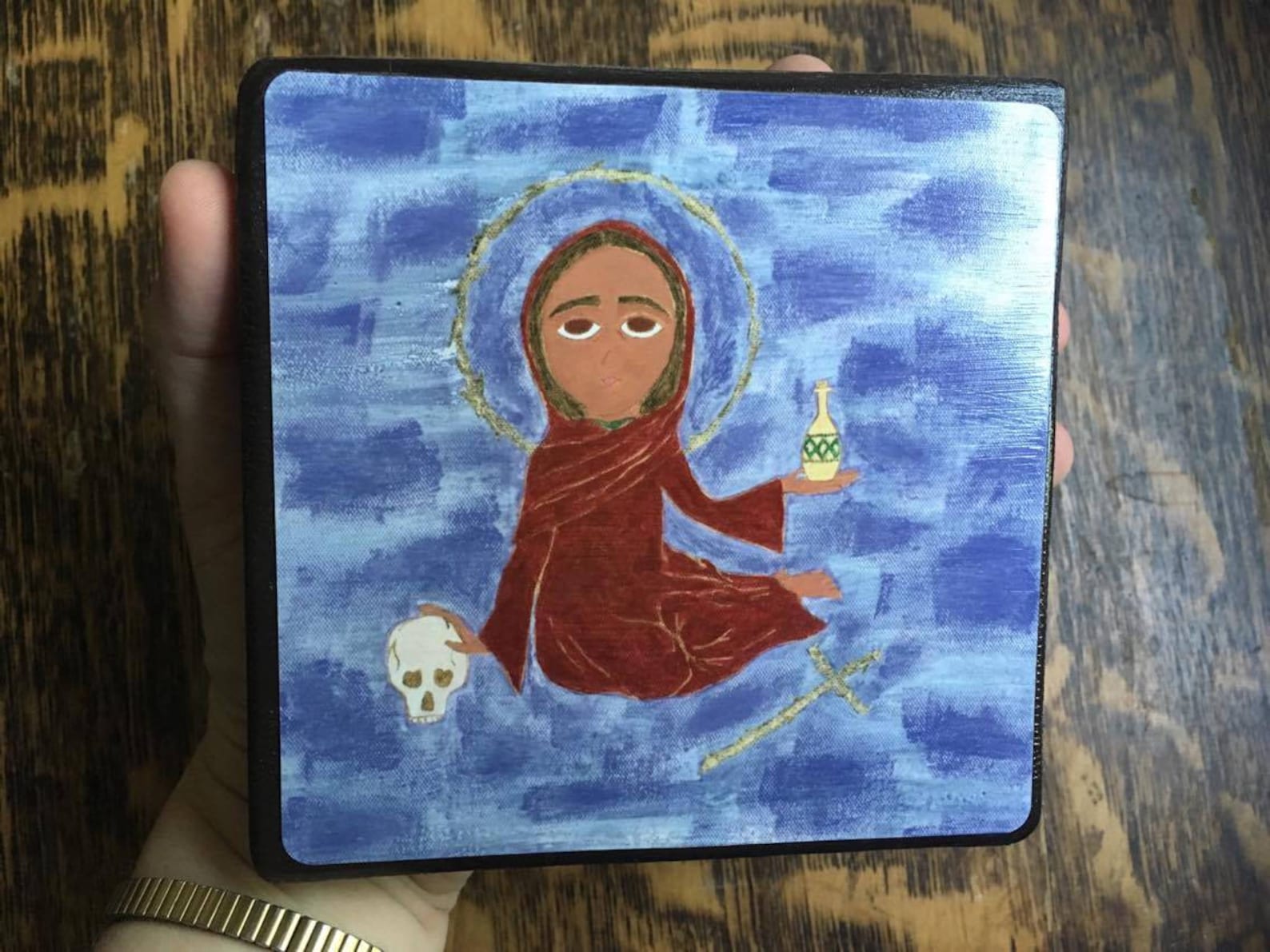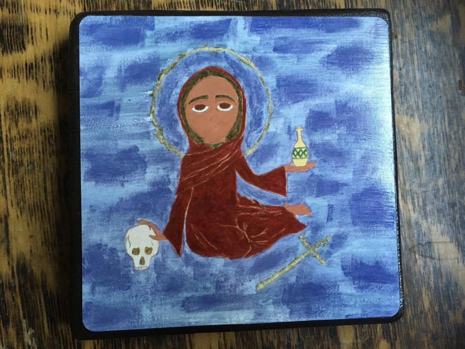 4 X 4 Saint Mary Magdalene Byzantine Folk style Icon Print on Wood