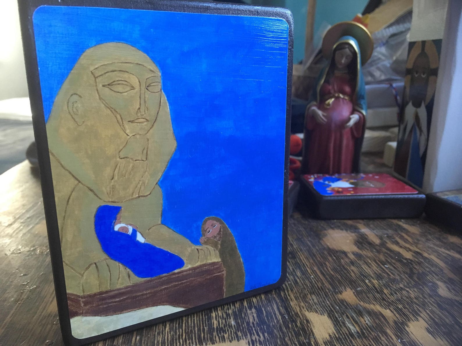4 X 6 Flight to Egypt Byzantine Folk style icon on wood by DL Sayles