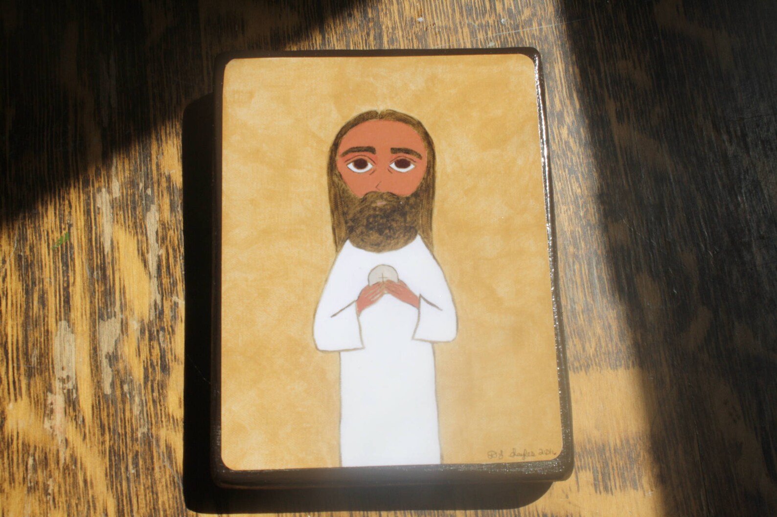 4 X 6 ish inch the institution of the Eucharist byzantine/folk icon on wood