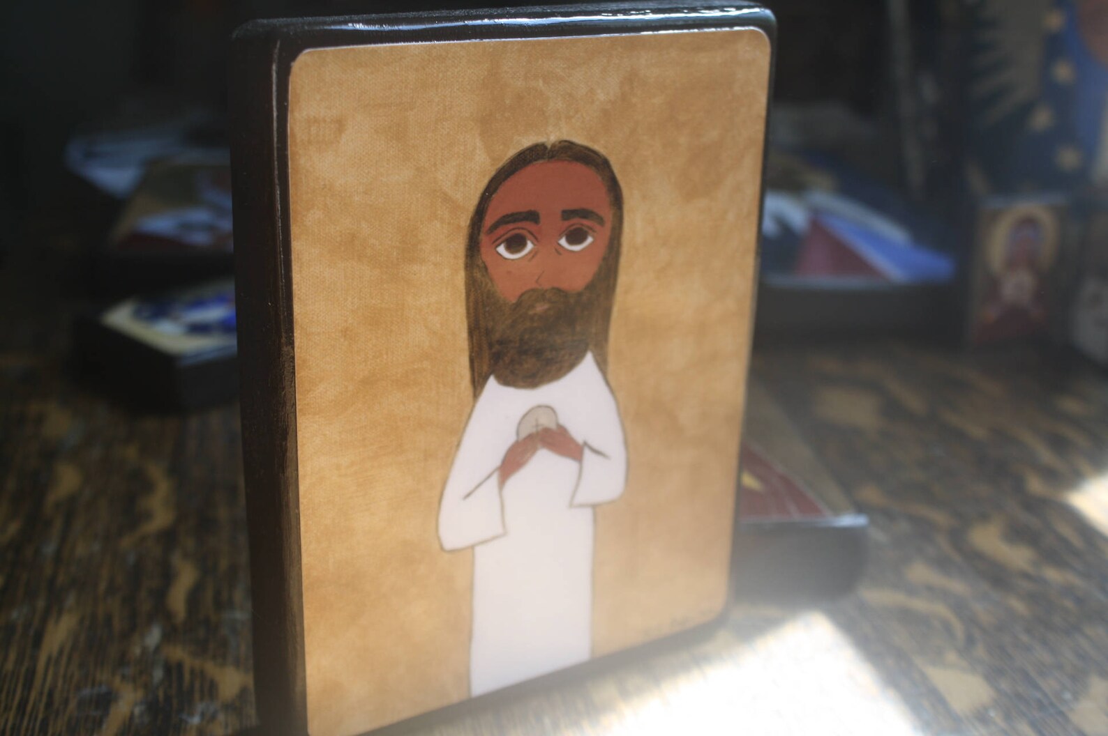 Be the first to review “4 X 6 ish inch the institution of the Eucharist byzantine/folk icon on wood” Cancel reply