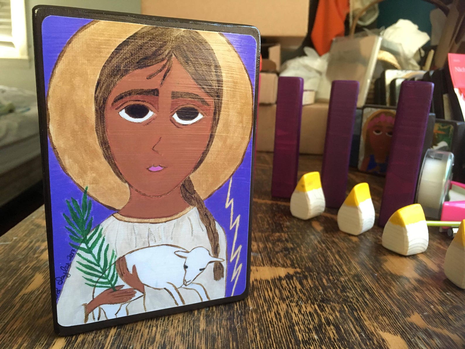 This is a print mounted on wood with a hanger in back. Other sizes available. Please allow up to a week for artisaning.