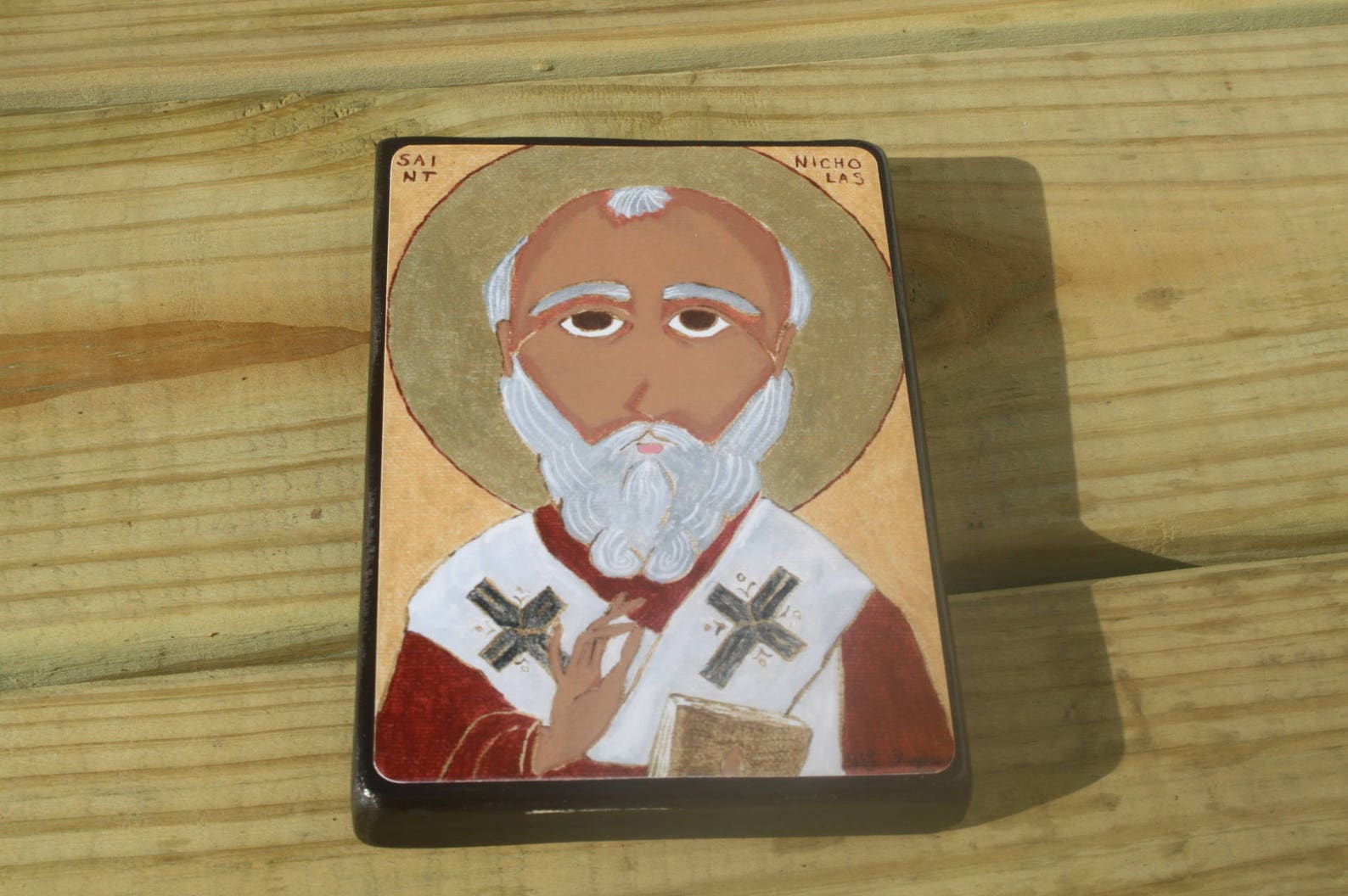 Be the first to review “4 X 6 Saint Nicholas Folk Byzantine Icon print on wood” Cancel reply