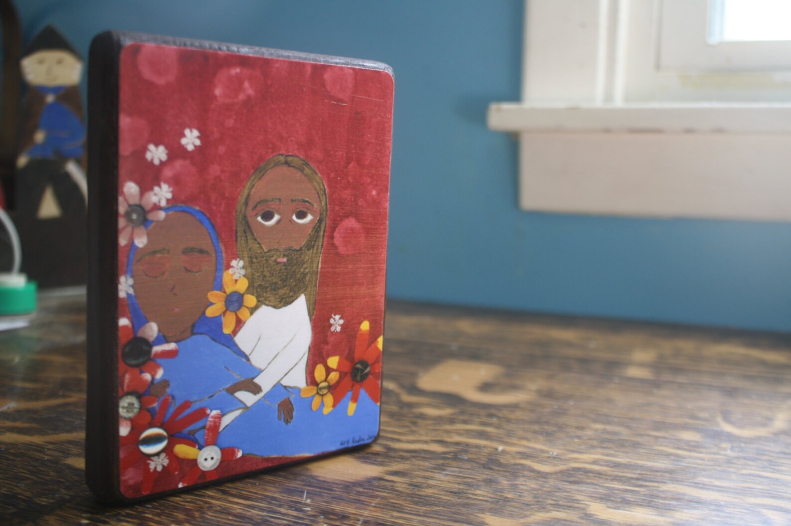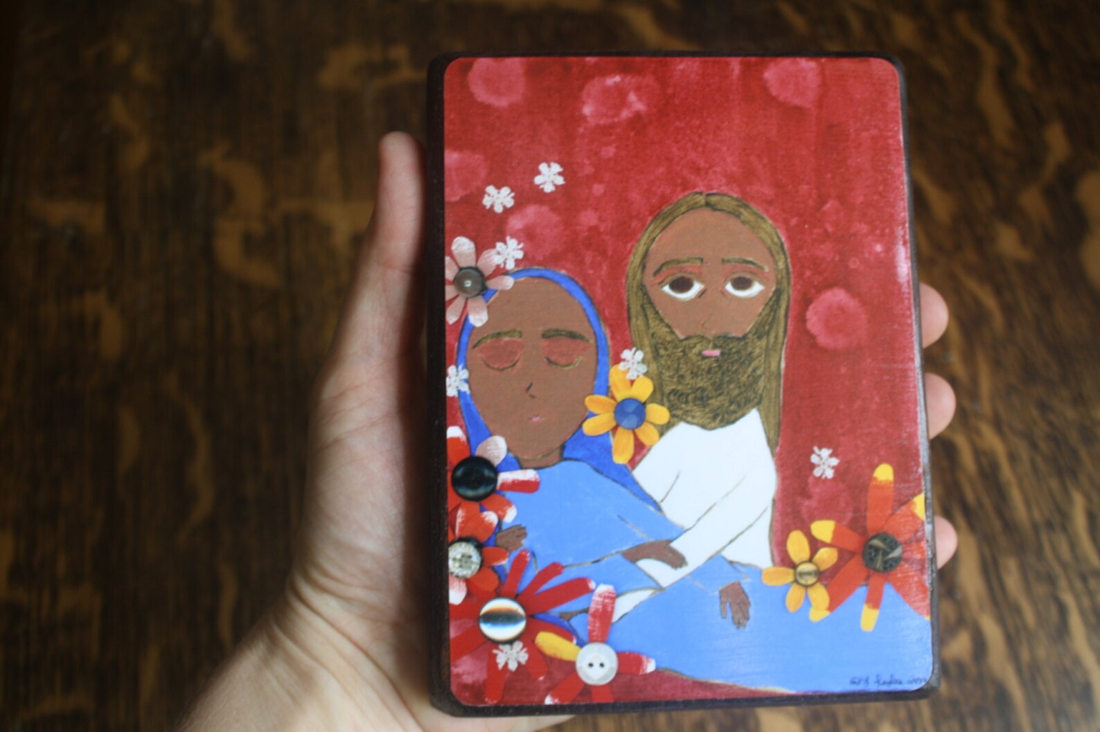 4X6 inch-ish The Assumption of the Blessed Mother Folk/ Byzantine icon print on wood by DL Sayles