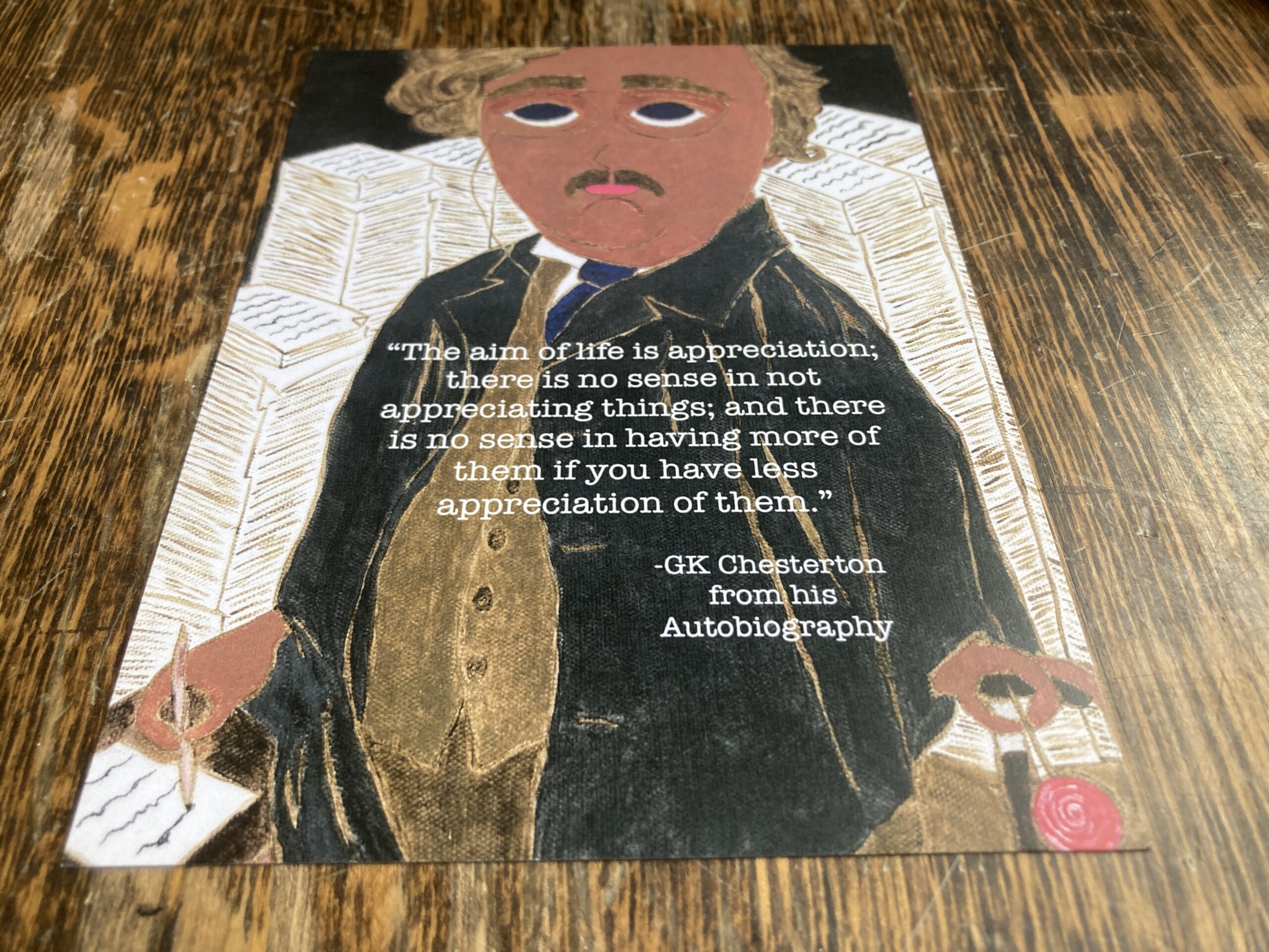 5 X 7 GK Chesterton “The Aim of Life is Appreciation” Quote Byzantine Folk Icon style Print