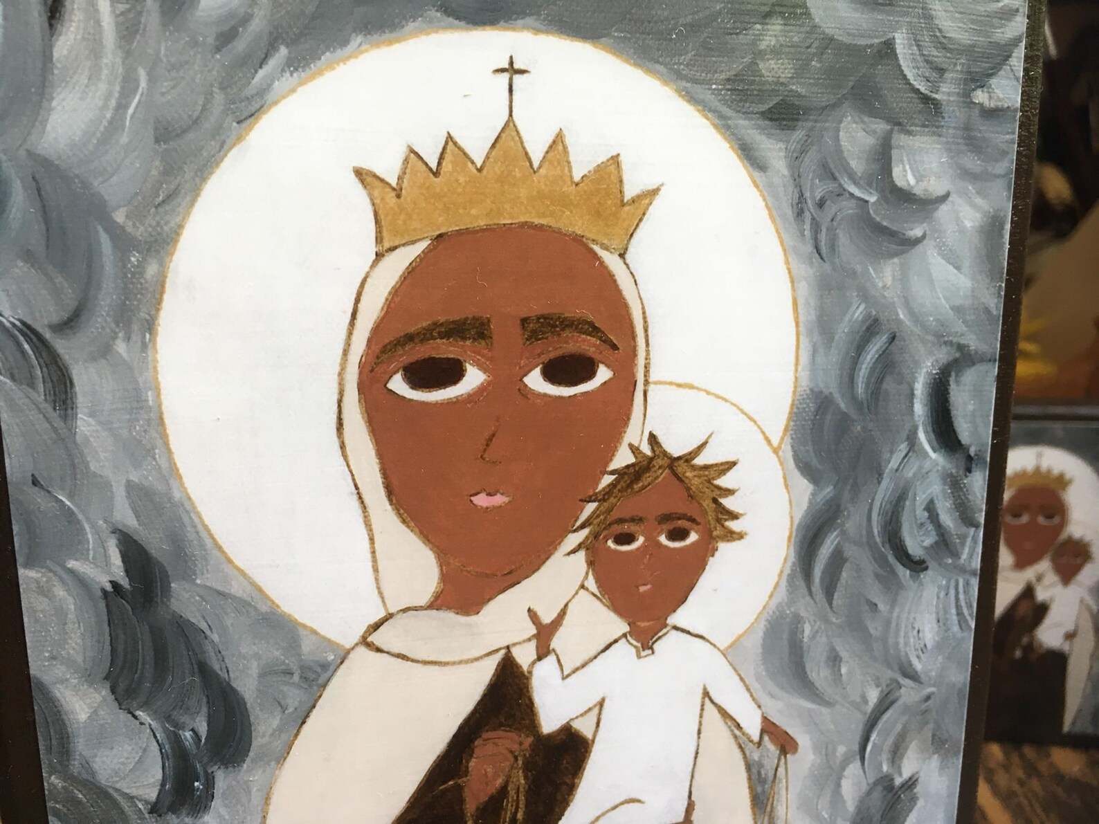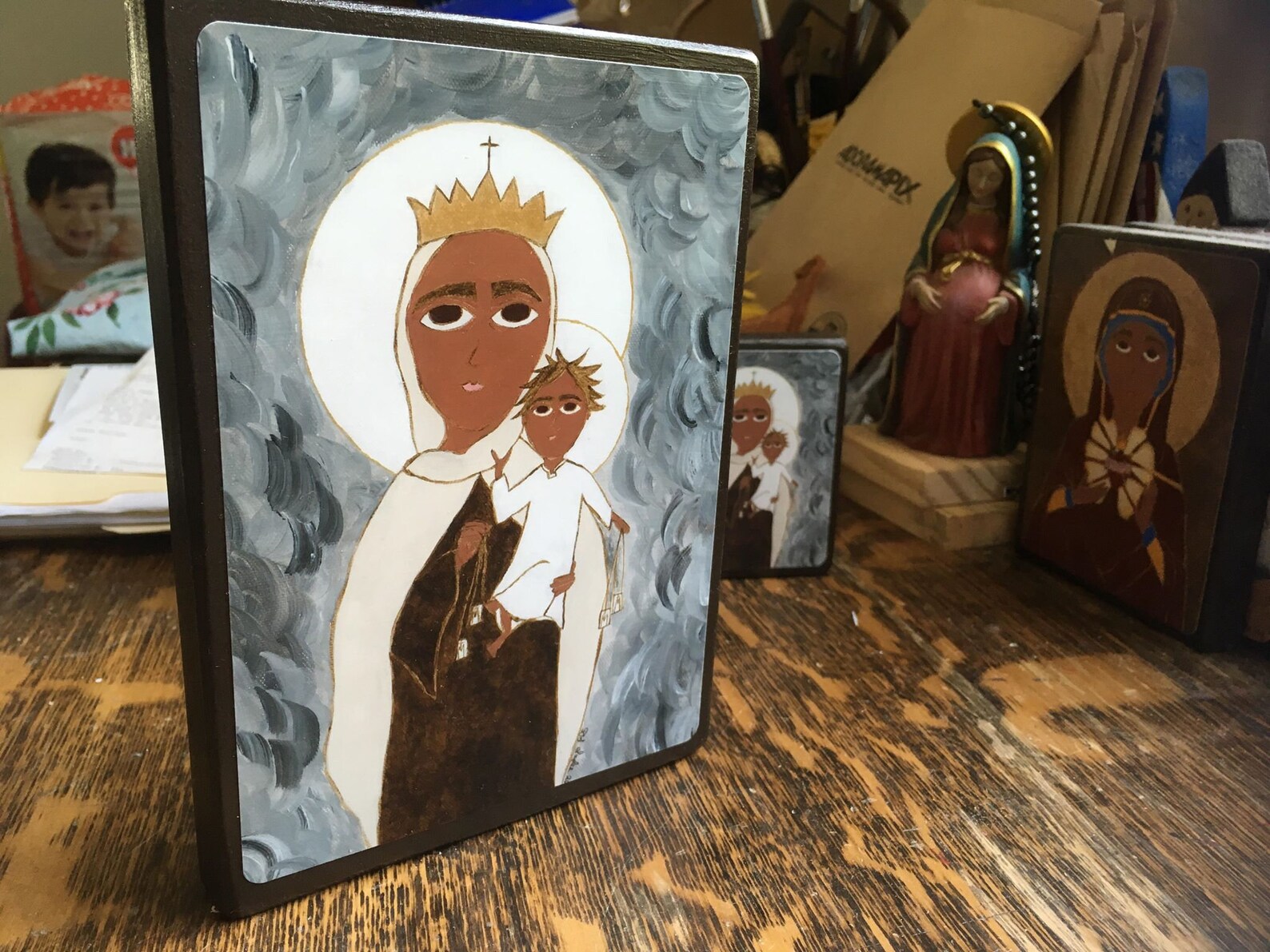 5″ X 7″ Our Lady of Mount Carmel Byzantine Folk style icon on wood by DL Sayles