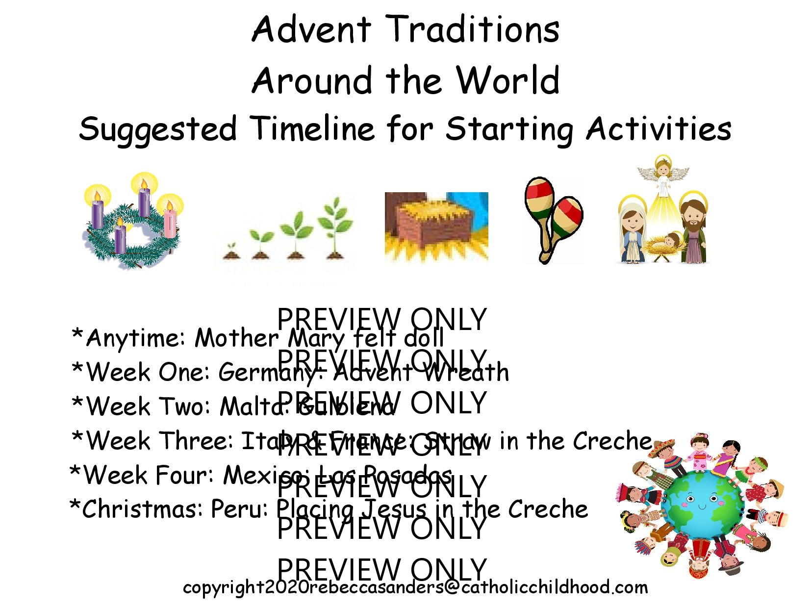 Digital file includes 30 pages including: the origin and history of each tradition, instructions for using the materials to participate in the custom, related activities for celebrating the tradition & suggested prayers, scripture readings, & songs which tie into many of the traditions.
