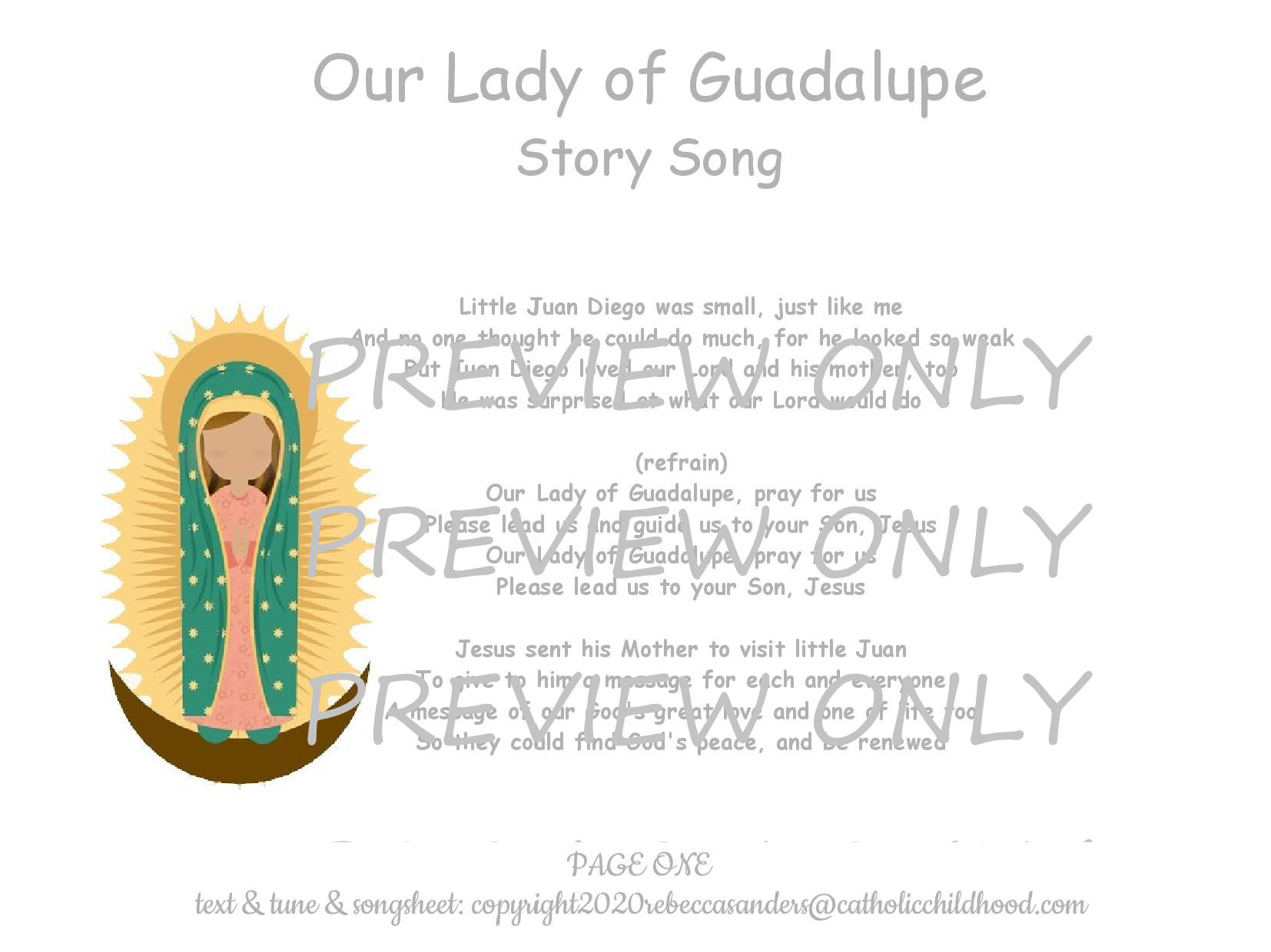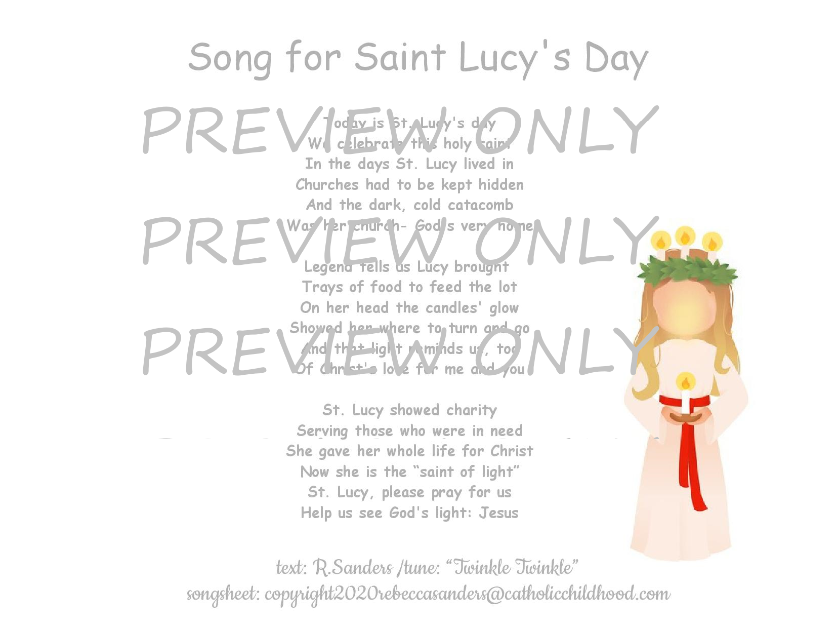 Celebrate the feast days of St. Nicholas, Our Lady of Guadalupe, & St. Lucy through these simple, sweet, singable songs for children, recordings & printable lyric sheets. written & recorded by Rebecca Sanders, a mom, catechist, & musician. Listen to samples by copy/pasting the following links to visit CatholicChildhood’s youtube channel: