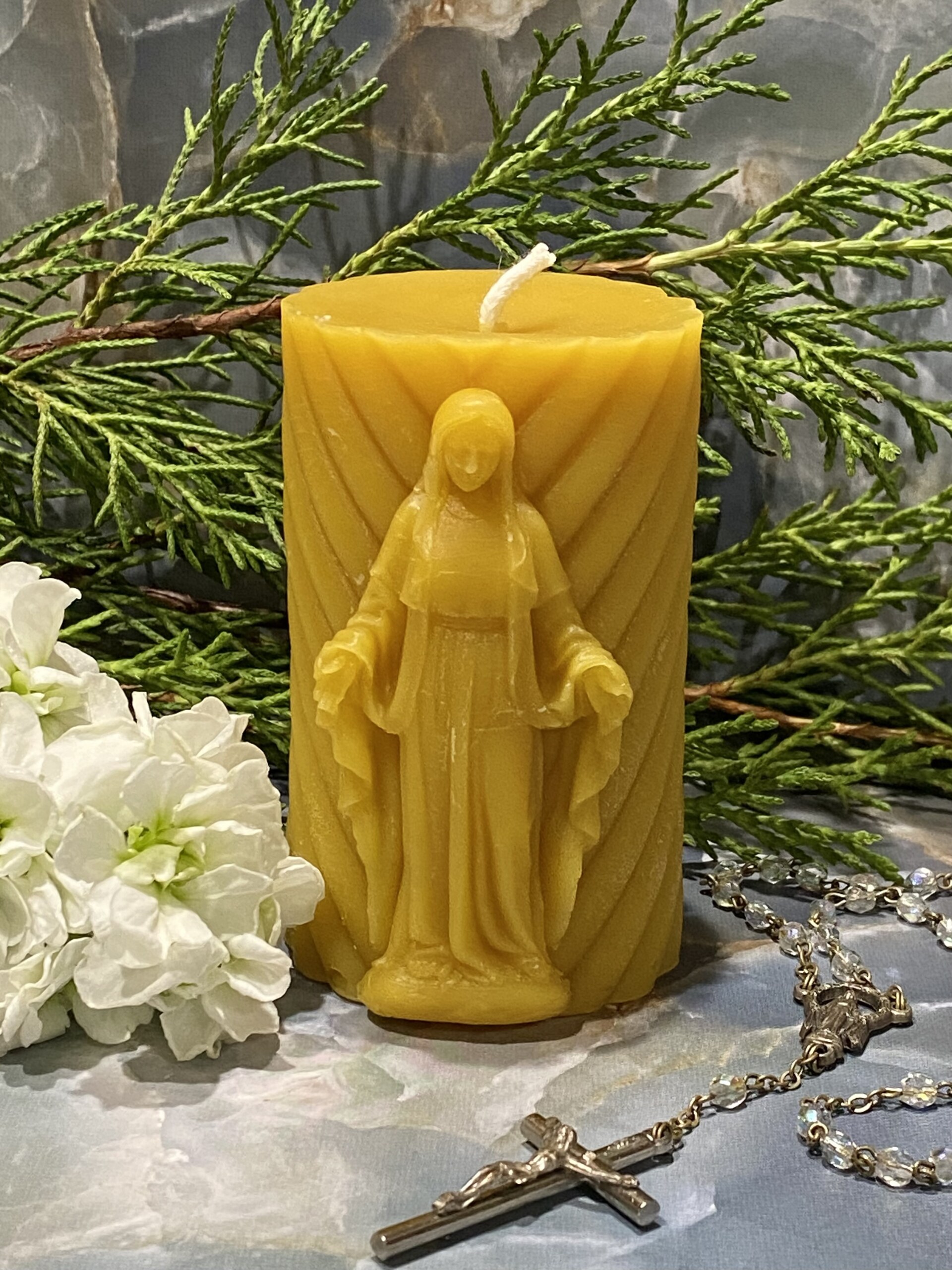 Be the first to review “Beeswax Blessed Mother Pillar” Cancel reply
