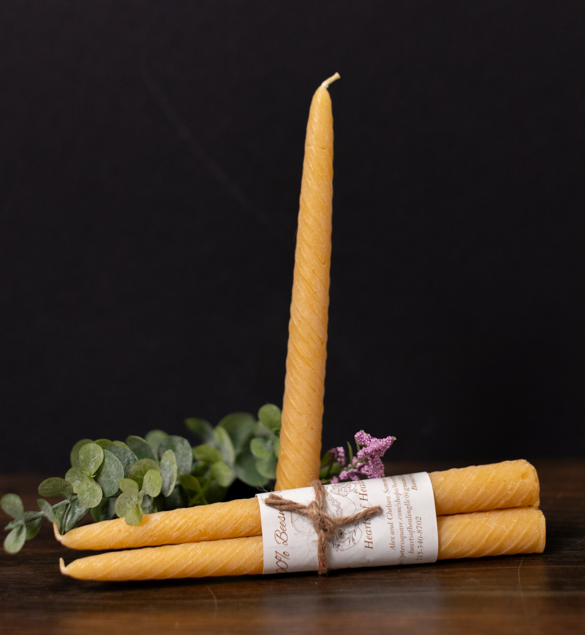 These 100% beeswax candles are hand poured from locally sourced beeswax which has a delightful aroma of honey.
