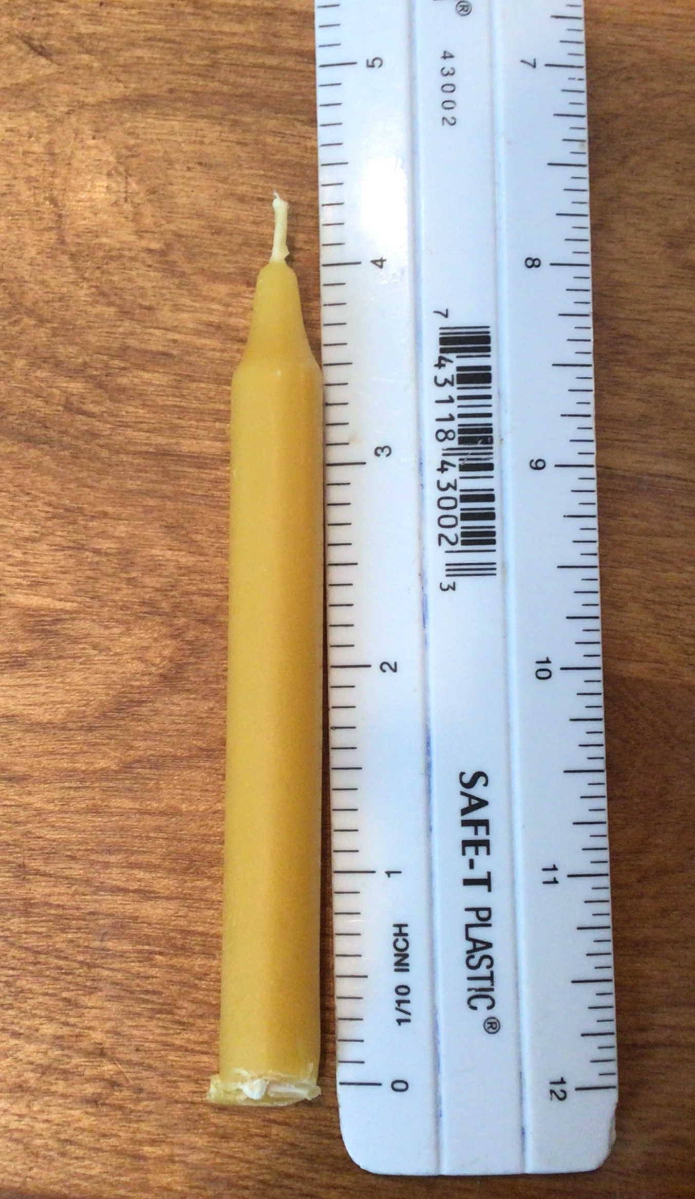 These 100% beeswax candles are hand poured from locally sourced wax which has a delightful aroma of honey. The candle is the perfect size for a sick call cross or for birthday candles. Each candle weighs 0.2 oz.