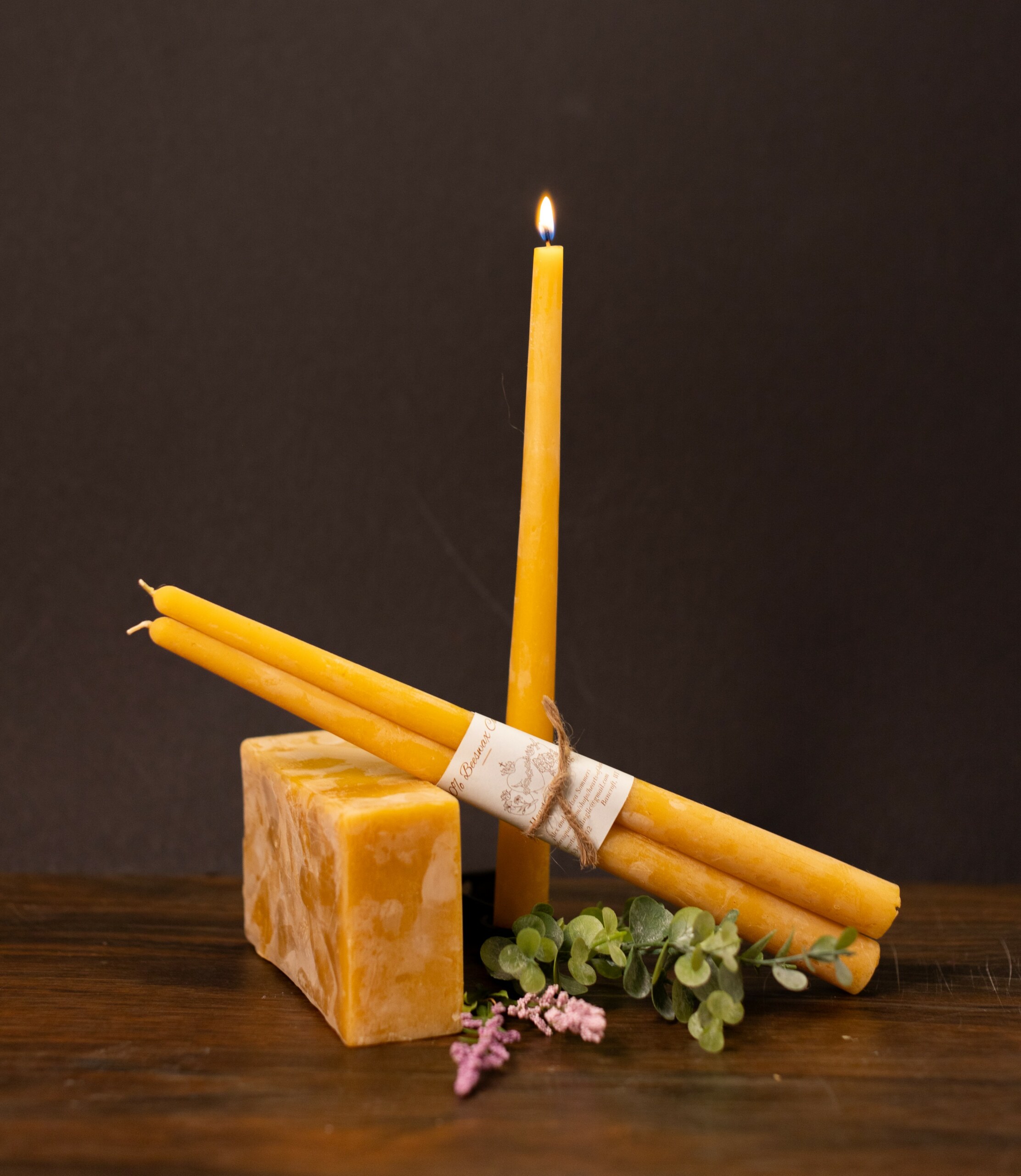 These 100% beeswax candles are hand poured from locally sourced beeswax which has a delightful aroma of honey. The candle burns for about 9 hours. It is 2 candle set.