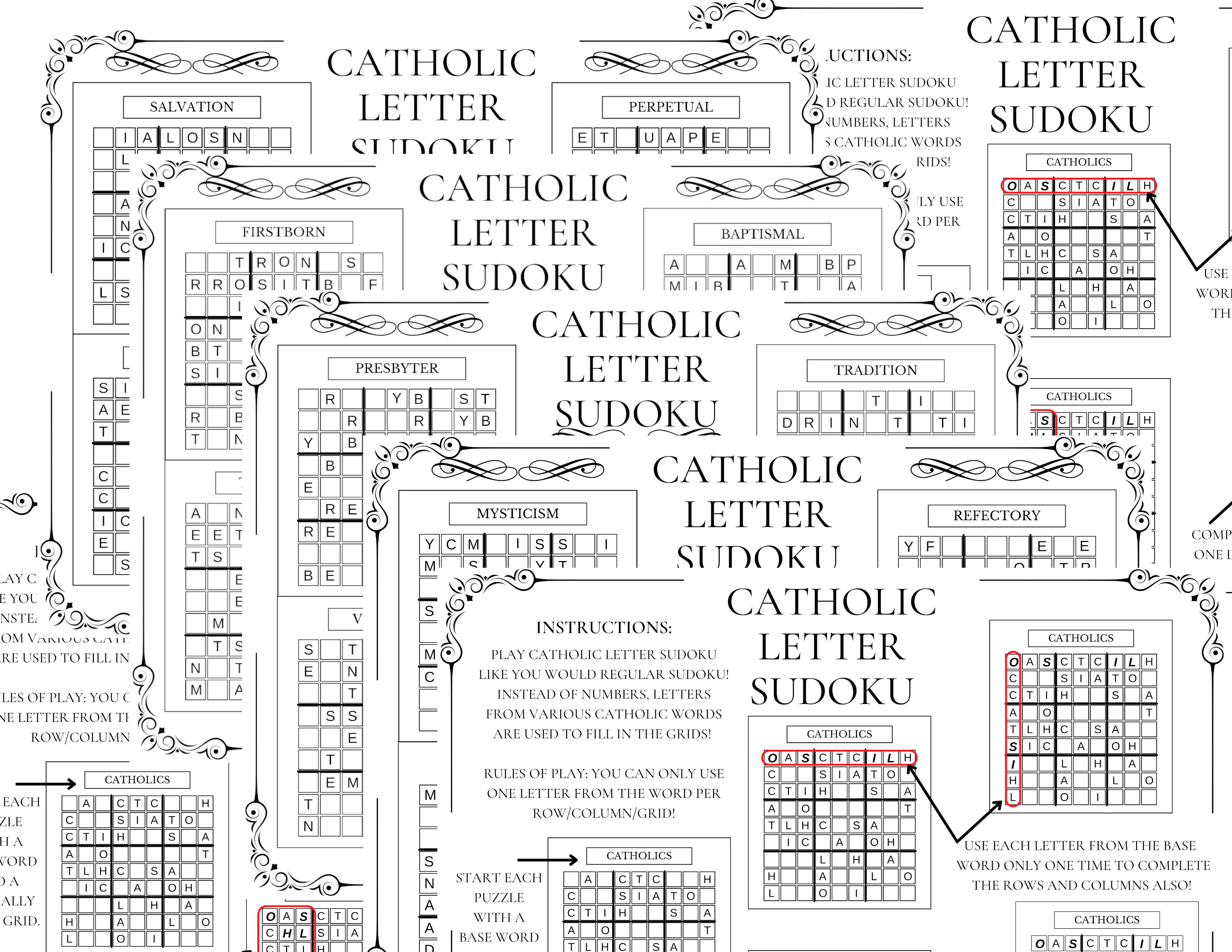 Here you will find a variety of 100+ Catholic word puzzles to pass the time while maybe learning a little something about the faith!