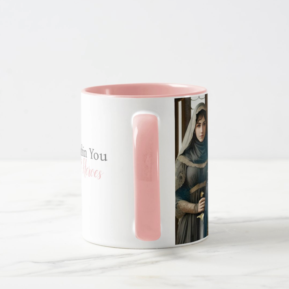 When Esther was called upon to save her people, her cousin Mardochai told her that perhaps she was made queen “for such a time as this”. On this jewelry box are three strong women who were called upon to do difficult things to save a nation and who responded with heroic sacrifice. Commemorate these beautiful women and think of their feminine strength every time you drink your coffee. 10 oz. mug