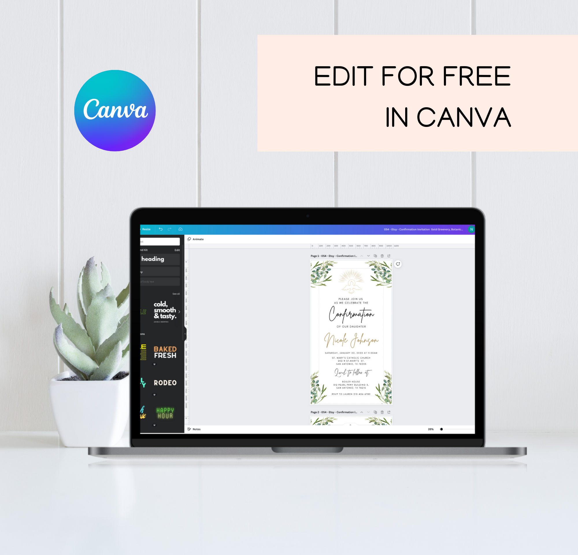 • Edit in Canva as much or little as you like. (You can change name, date, time, address, RSVP, font, colors, background etc.)