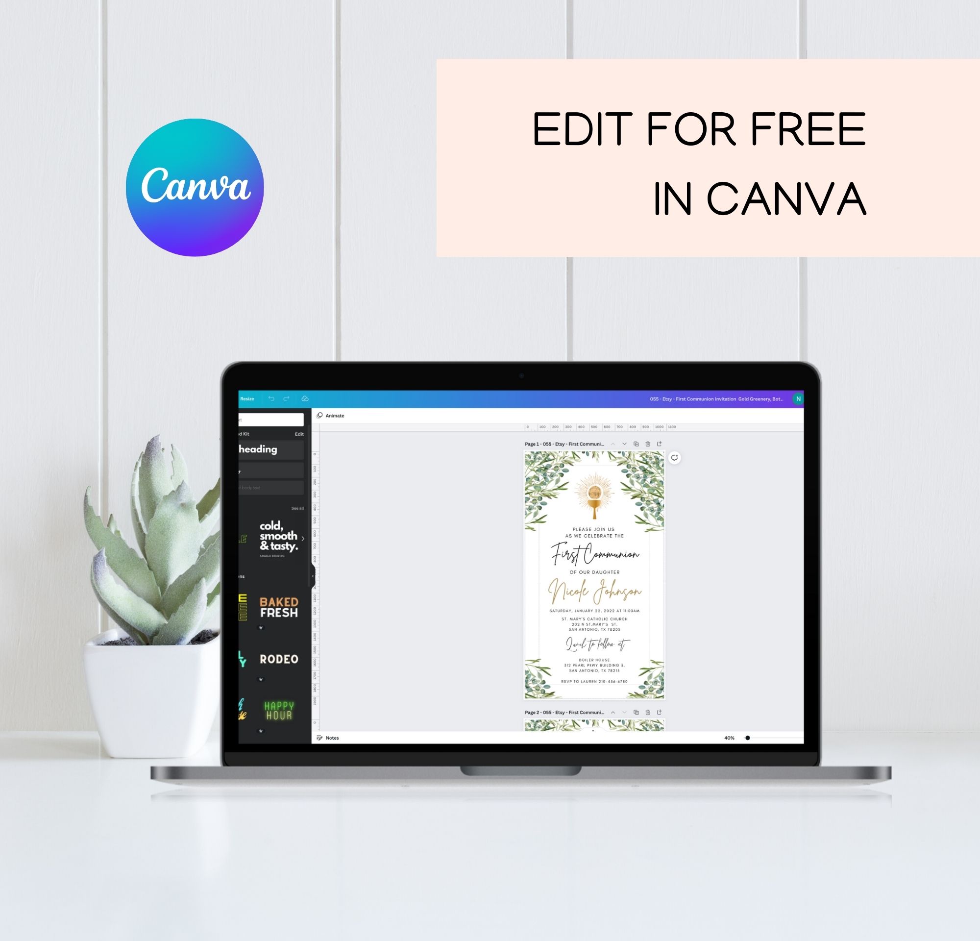 Digital First Communion Invitation Digital Communion Invitation Template Canva