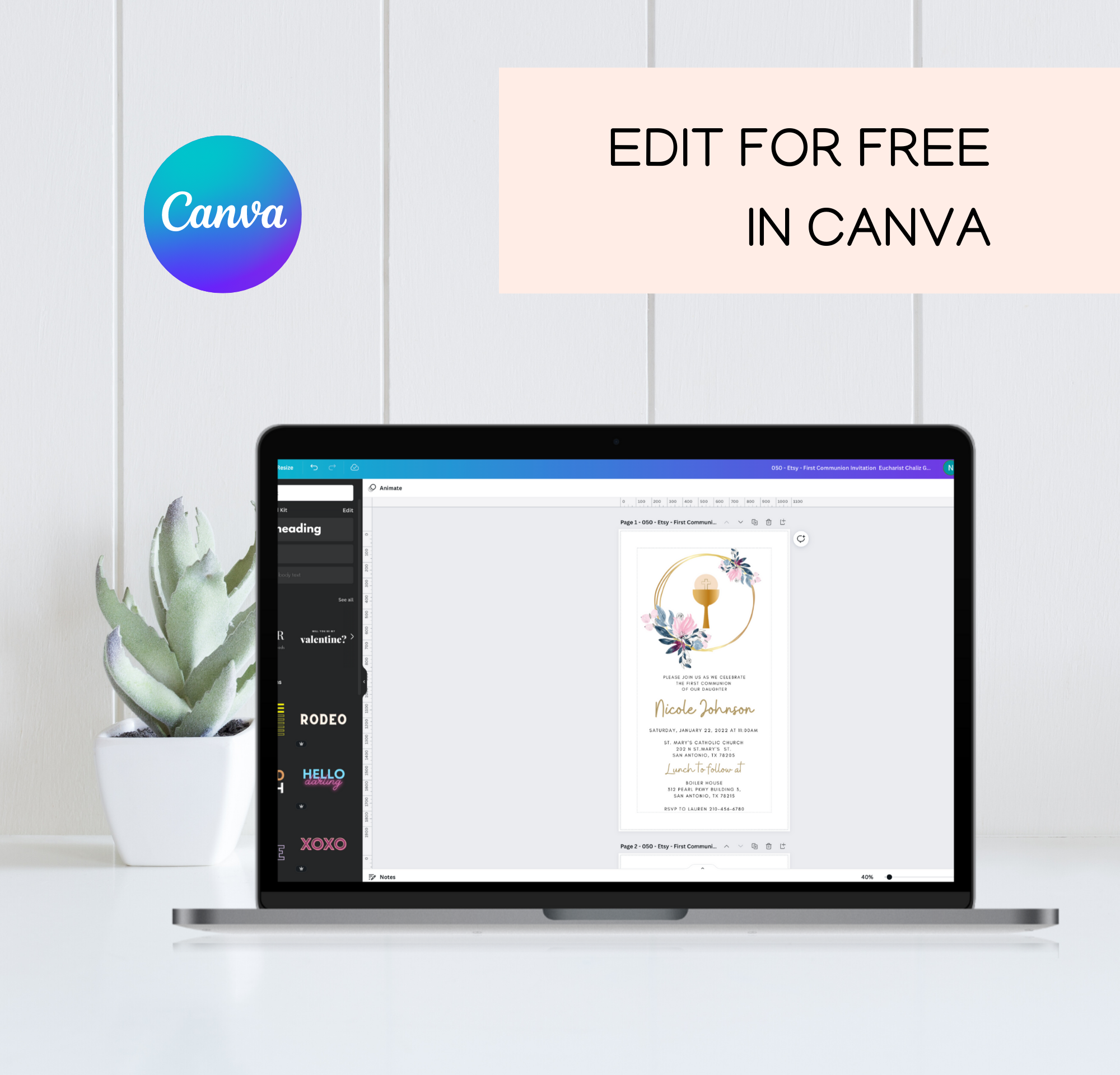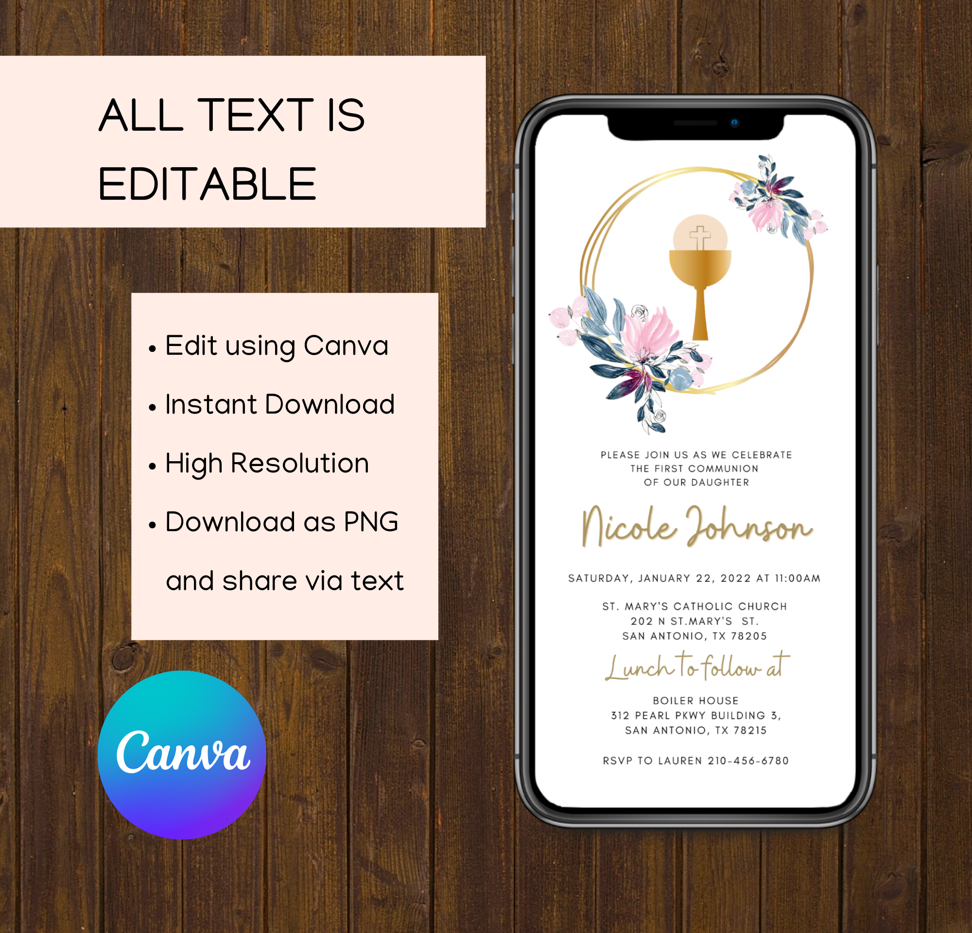 Digital First Communion Invitation Digital Communion Invitation Template Canva