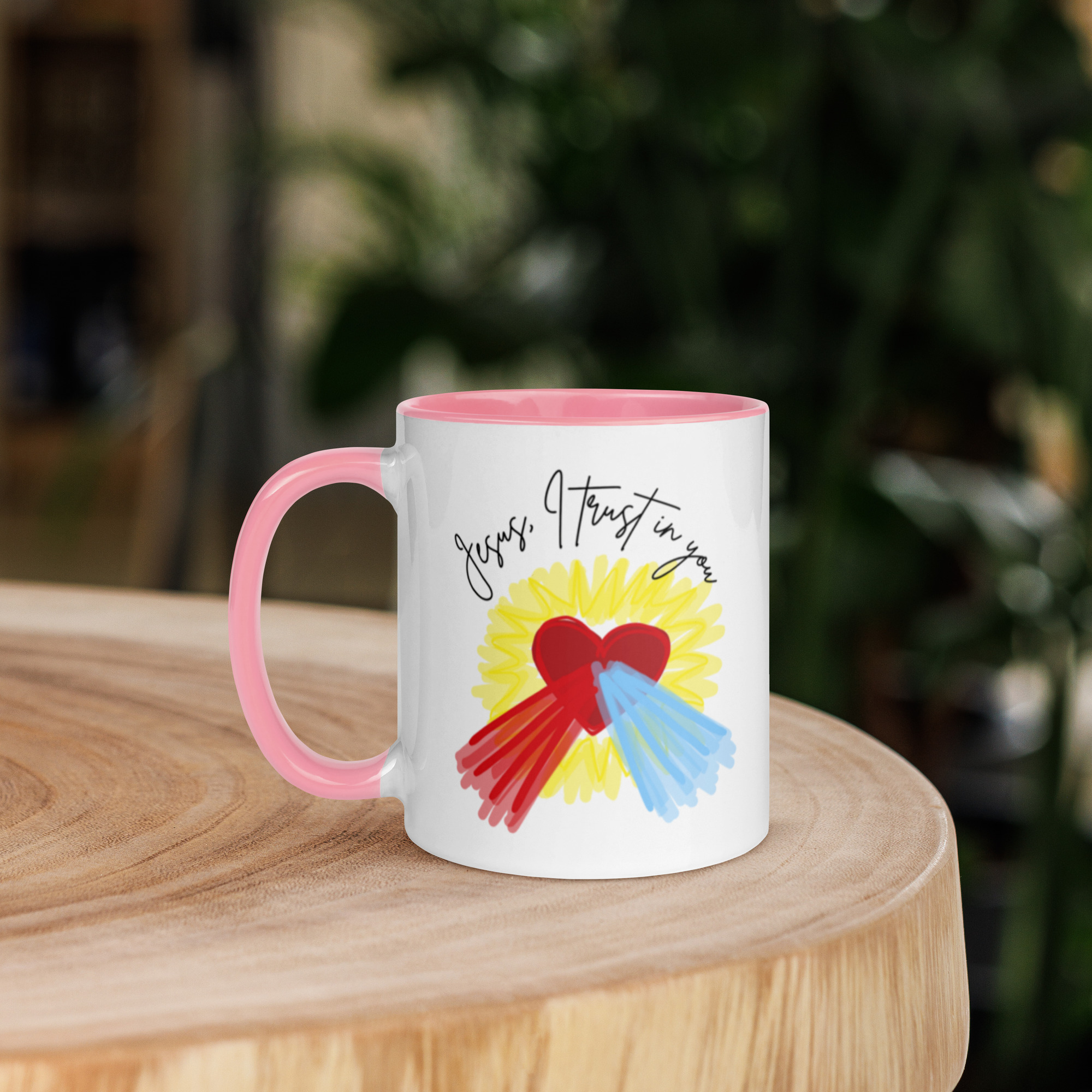 Inspired by the Divine Mercy, add a splash of color to your morning coffee or tea ritual! These ceramic mugs not only have a beautiful design on them, but also a colorful rim, handle, and inside, so the mug is bound to spice up your mug rack.