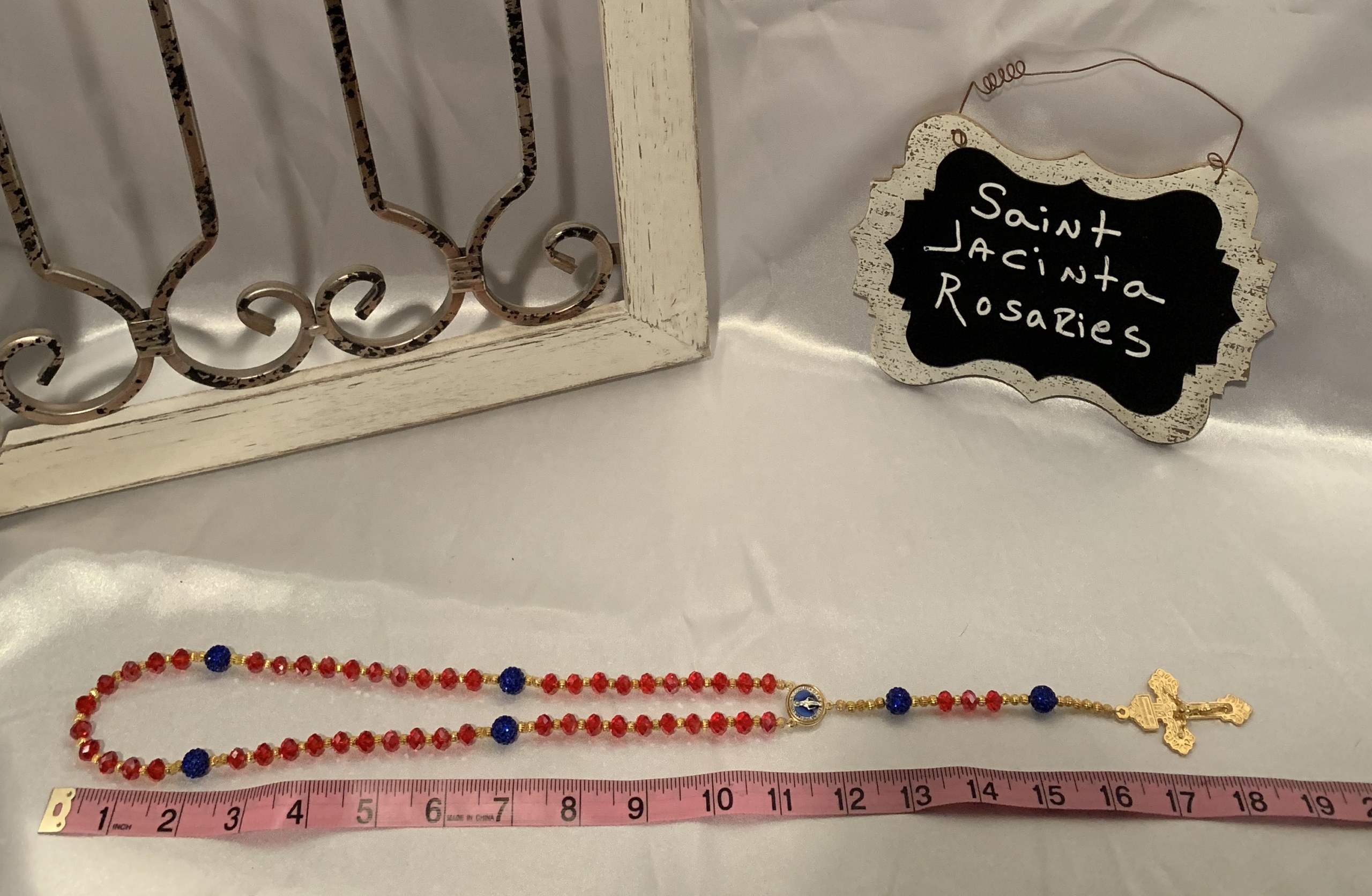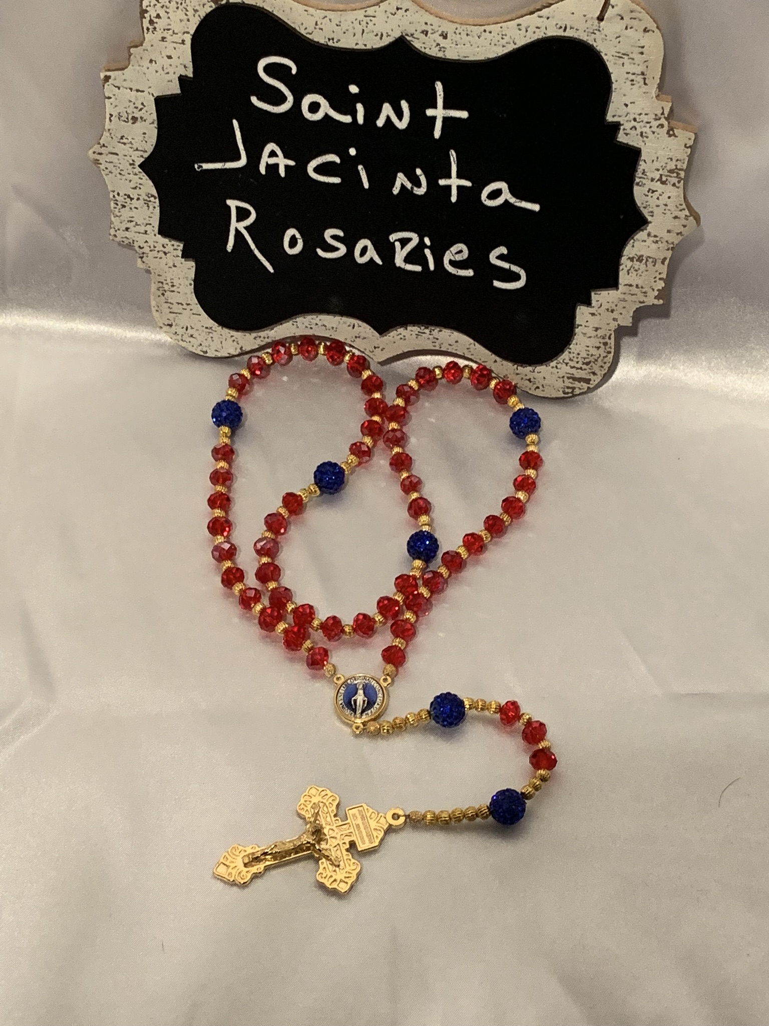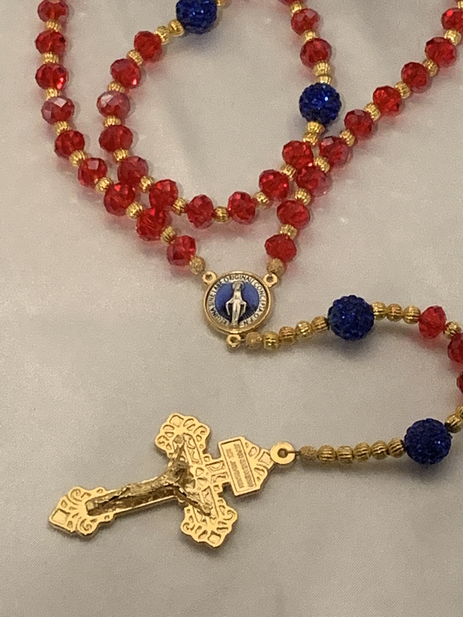 Beautiful handmade, one of a kind glass bead rosary. The rosary center is a depiction of the Miraculous Medal. Handmade with love and prayer in Wyoming. I use heavy duty jewelry wire to ensure rosary is very durable.