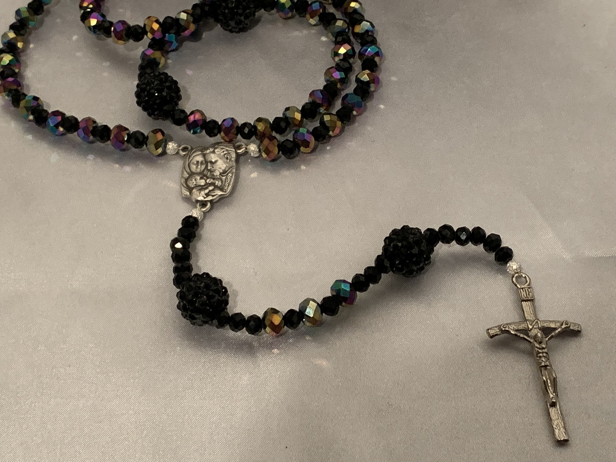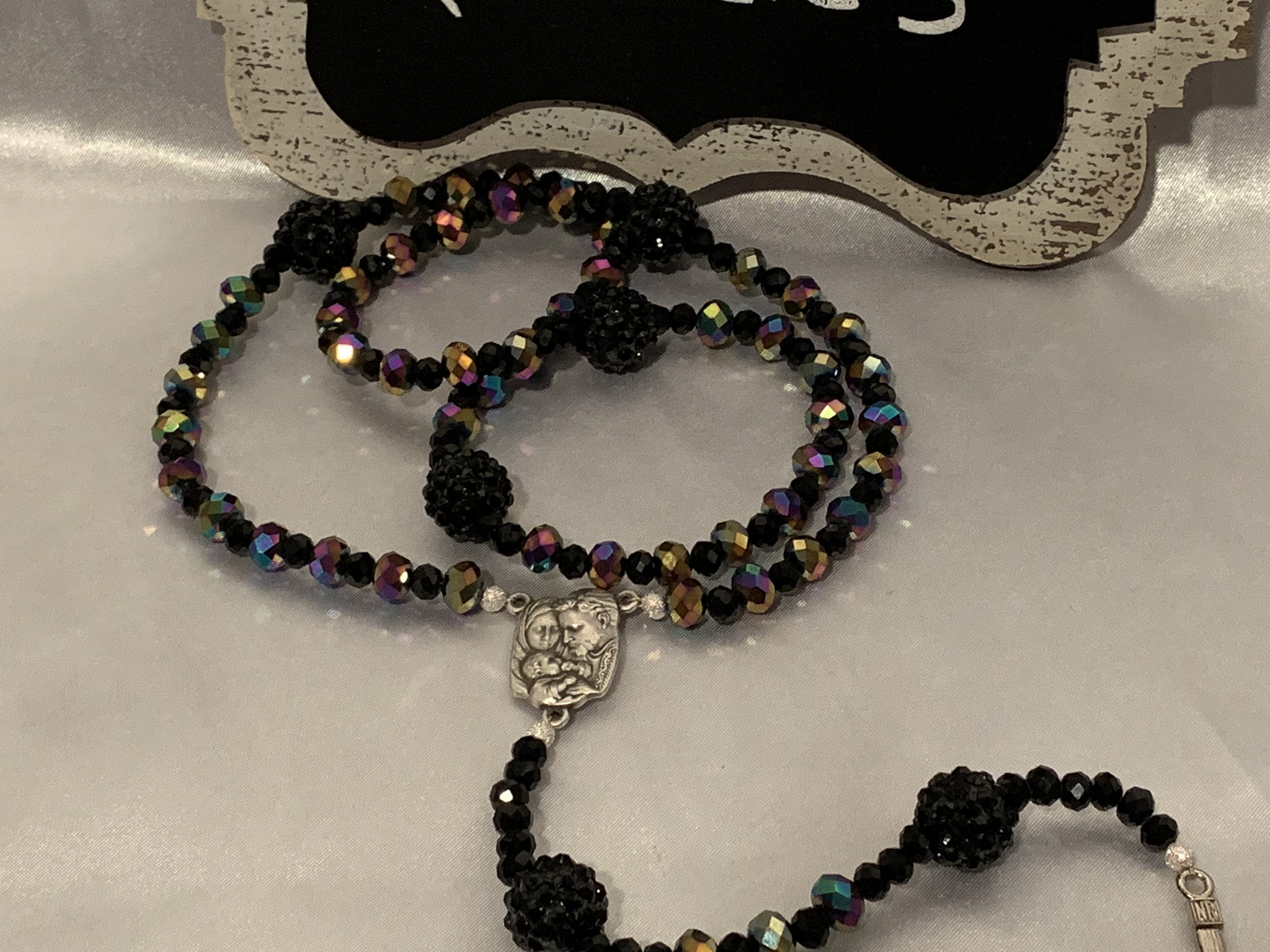 Beautiful handmade, one of a kind stone bead rosary. The rosary center is a depiction of the Holy Family. Handmade with love and prayer in Wyoming. I use heavy duty jewelry wire to ensure rosary is very durable.
