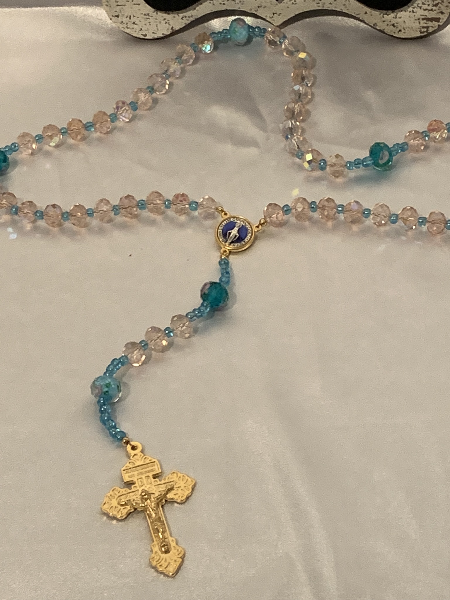 Beautiful one of a kind crystal and glass bead rosary.