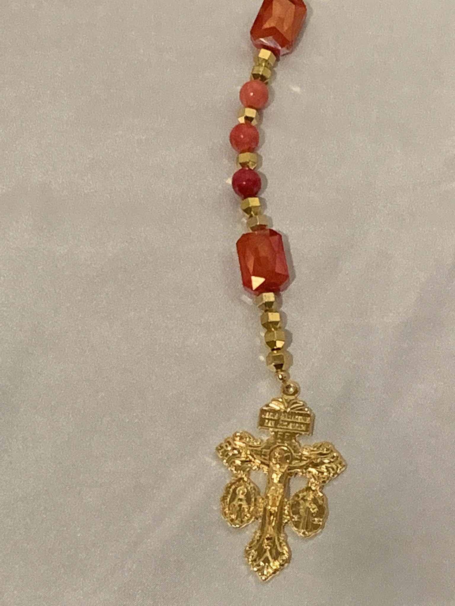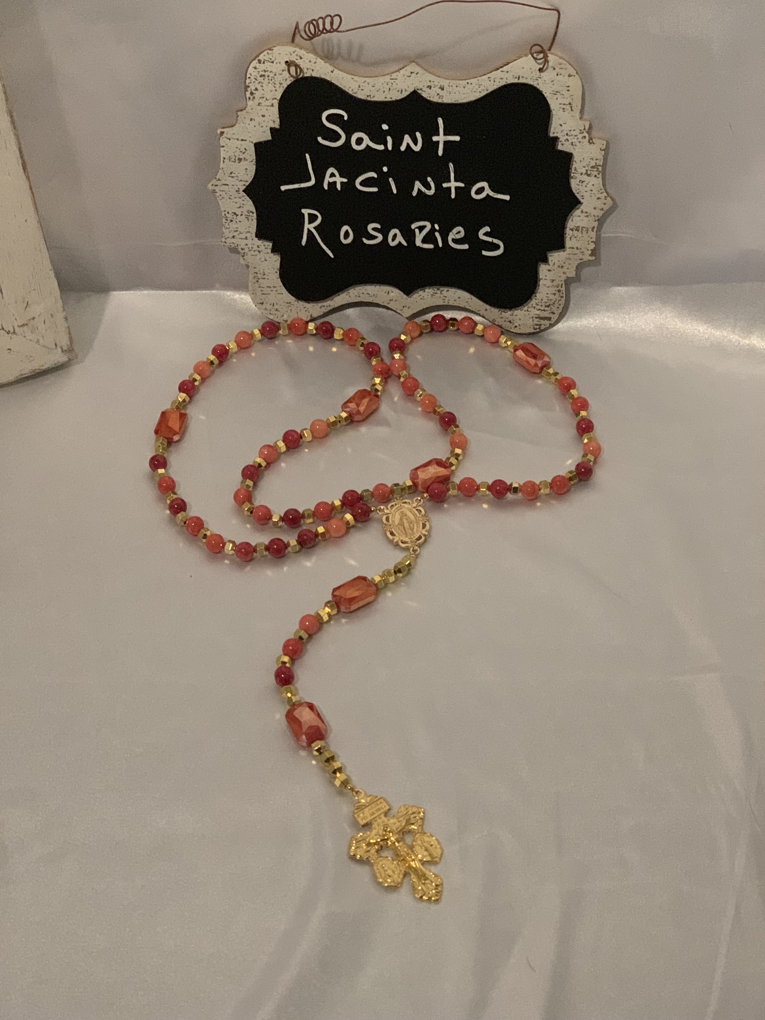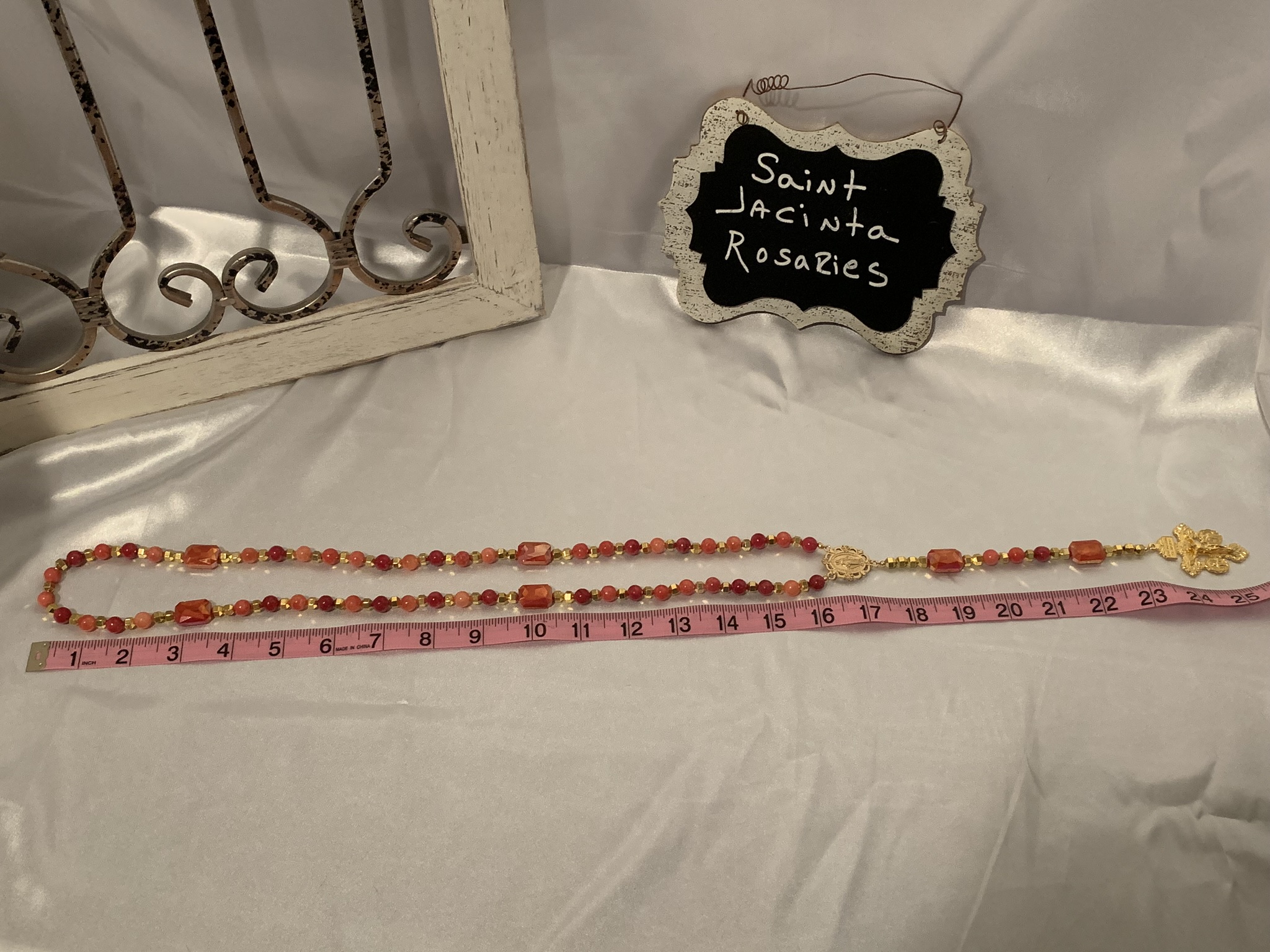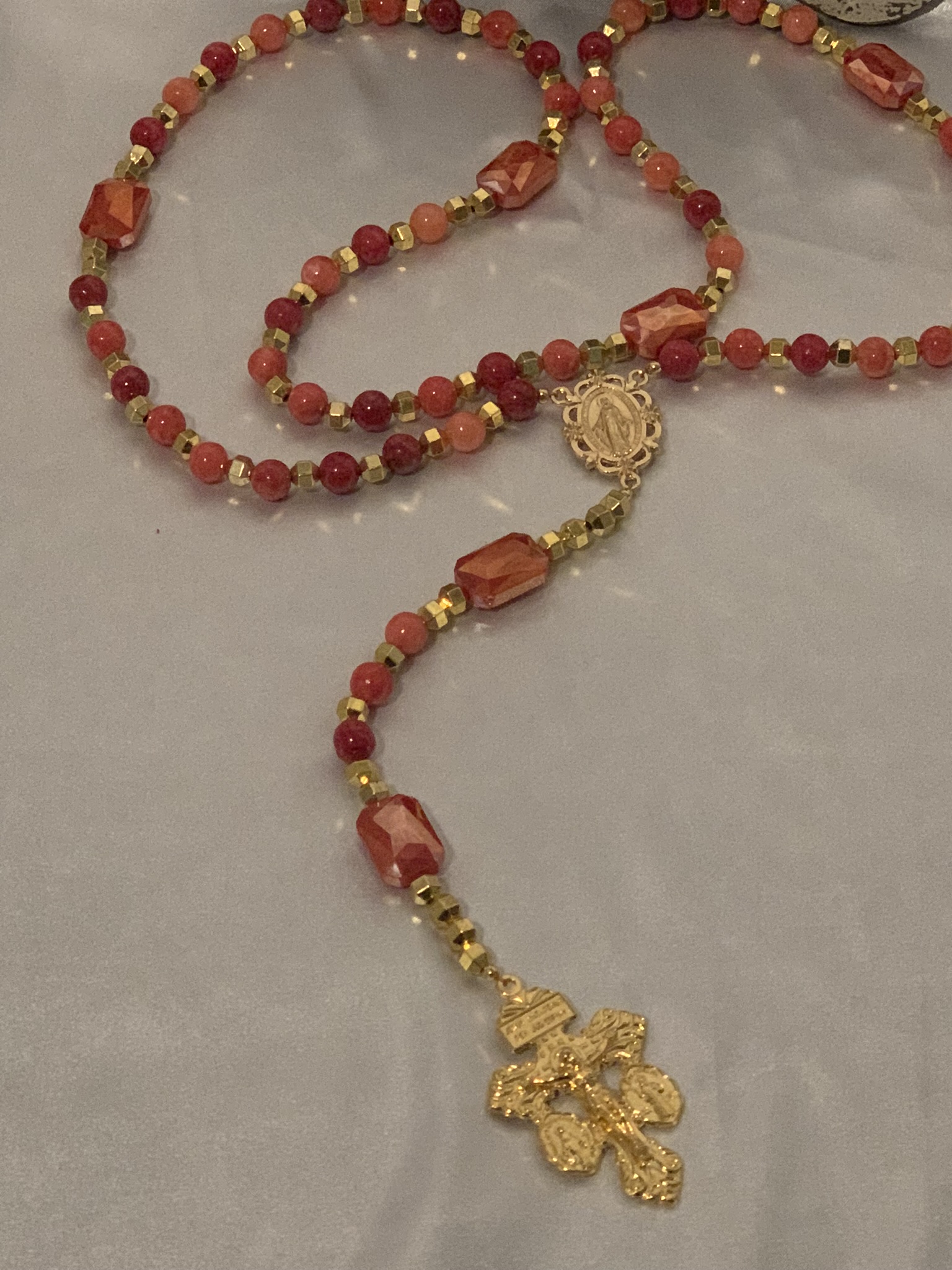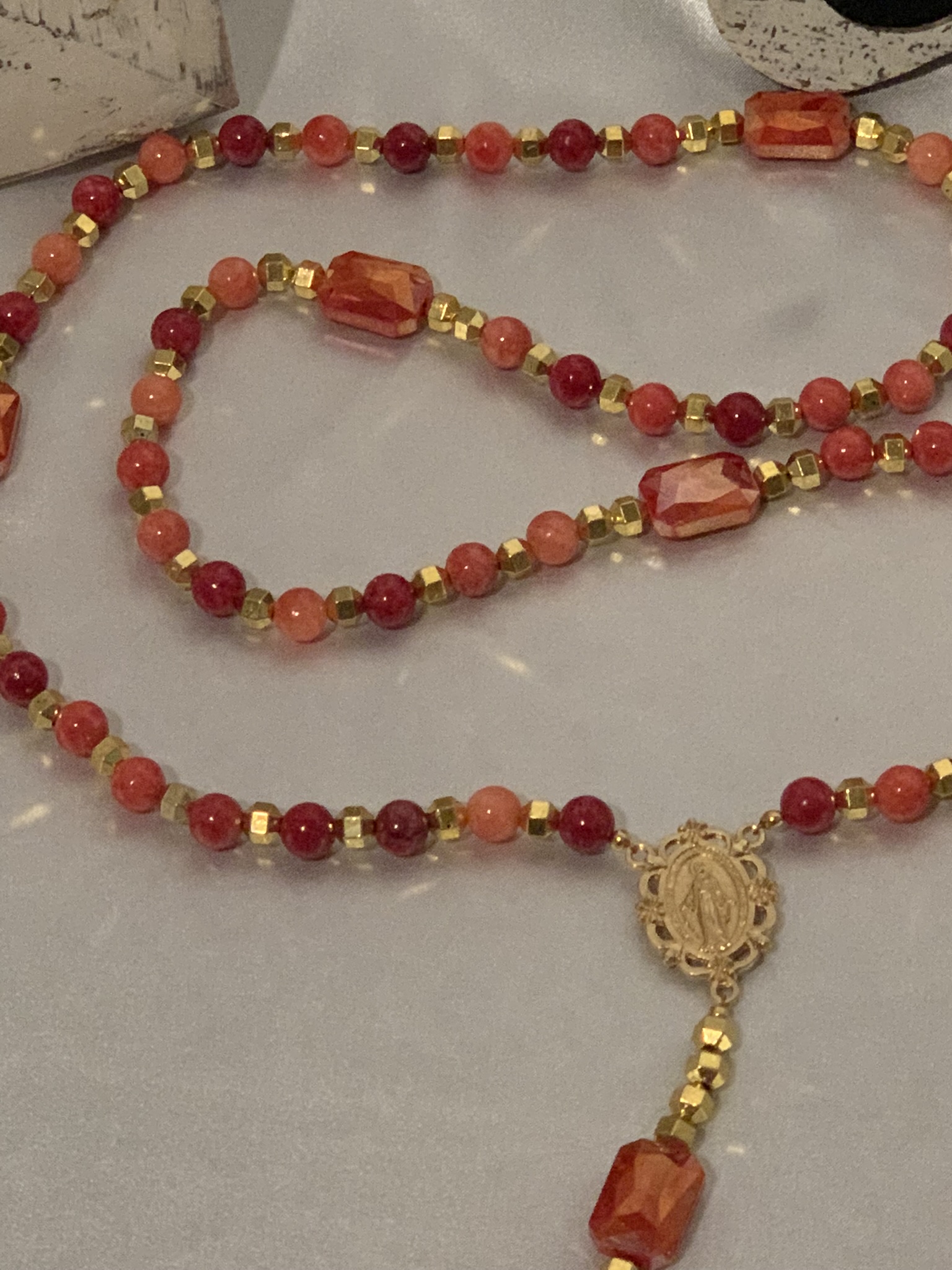 Beautiful handmade, one of a kind glass bead rosary. The rosary center is a depiction of the Miraculous Medal. Handmade with love and prayer in Wyoming. I use heavy duty jewelry wire to ensure rosary is very durable.
