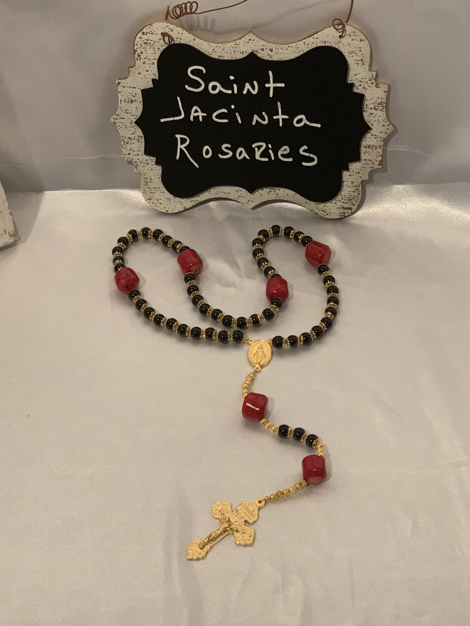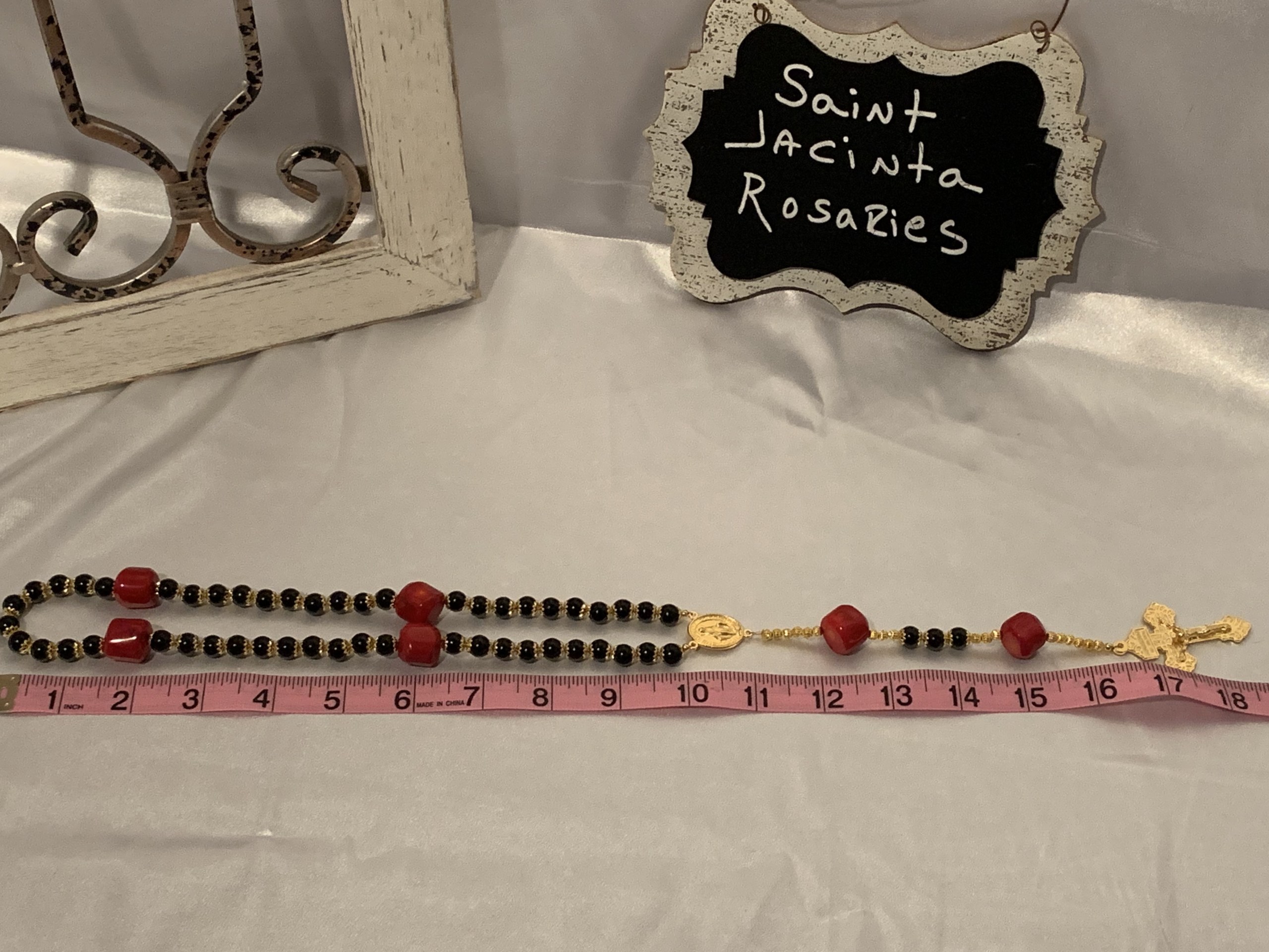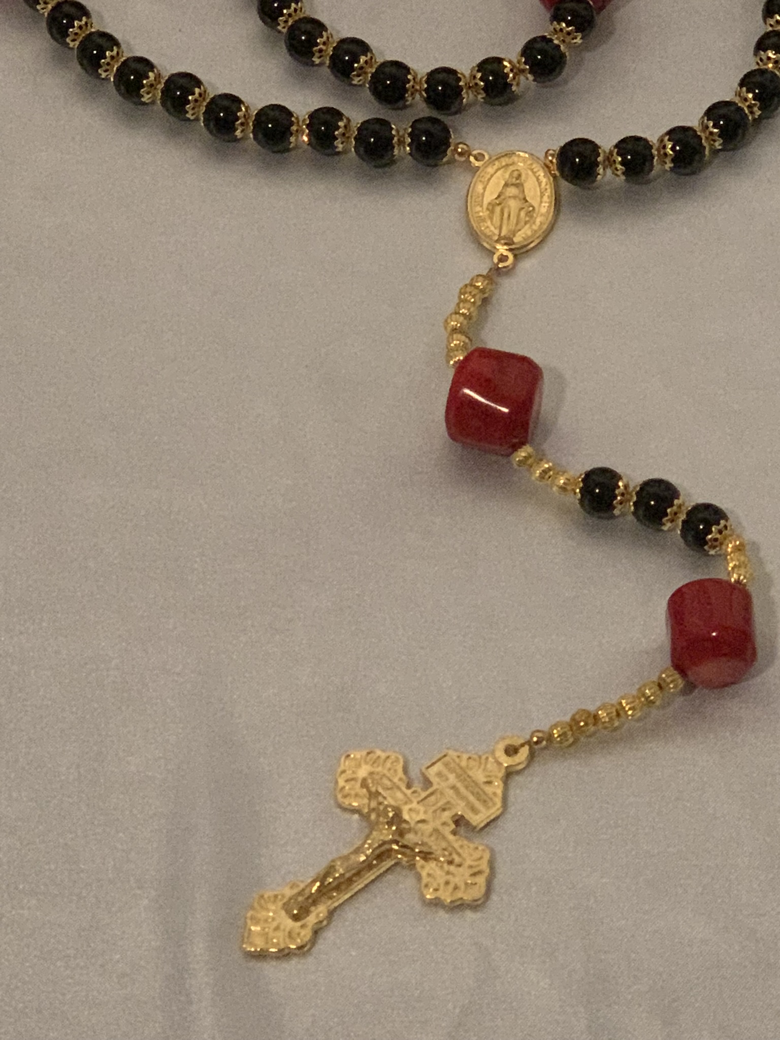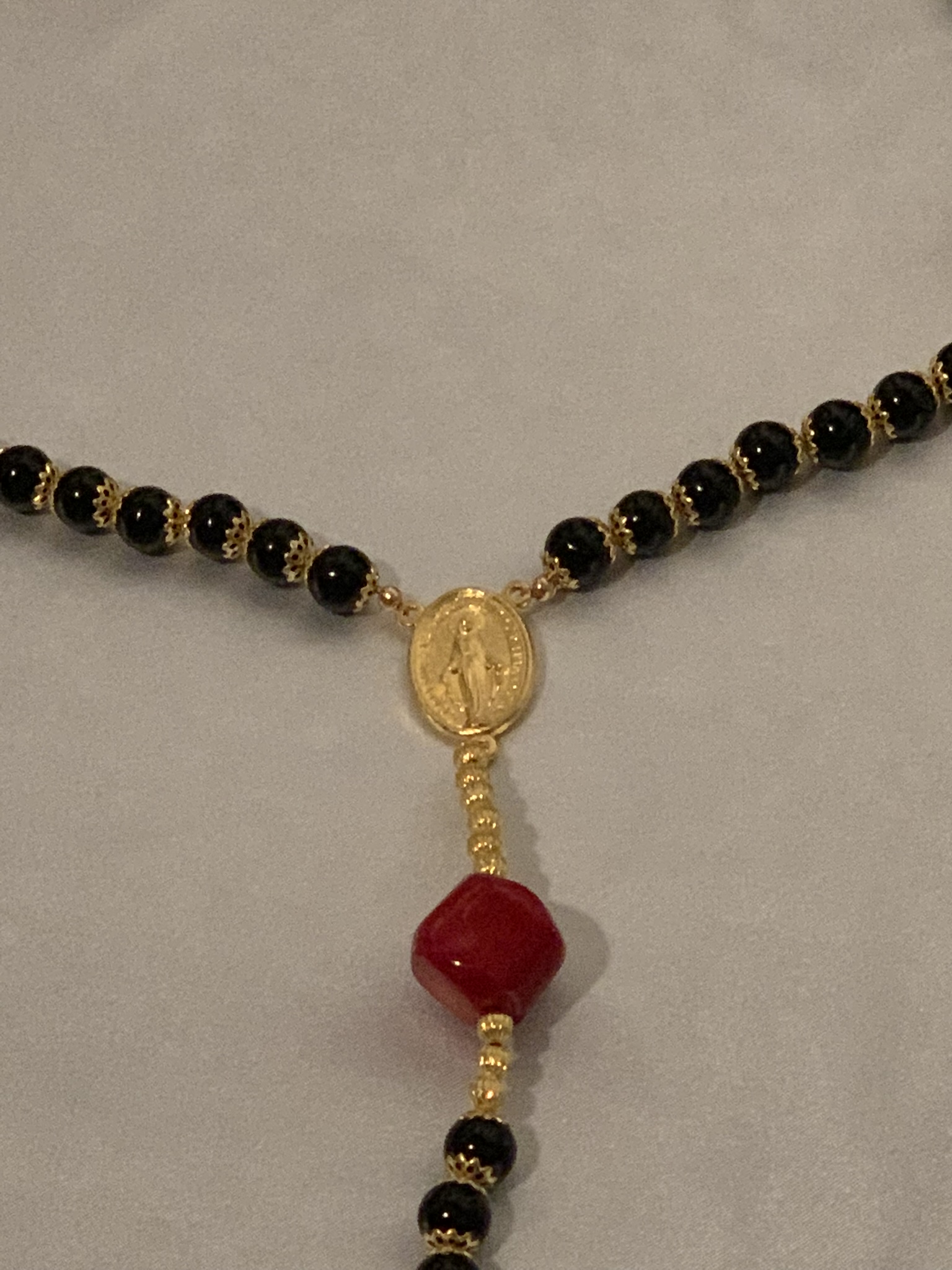 Beautiful handmade, one of a kind glass and coral bead rosary. The rosary center is a depiction of the Miraculous Medal. Handmade with love and prayer in Wyoming. I use heavy duty jewelry wire to ensure rosary is very durable.