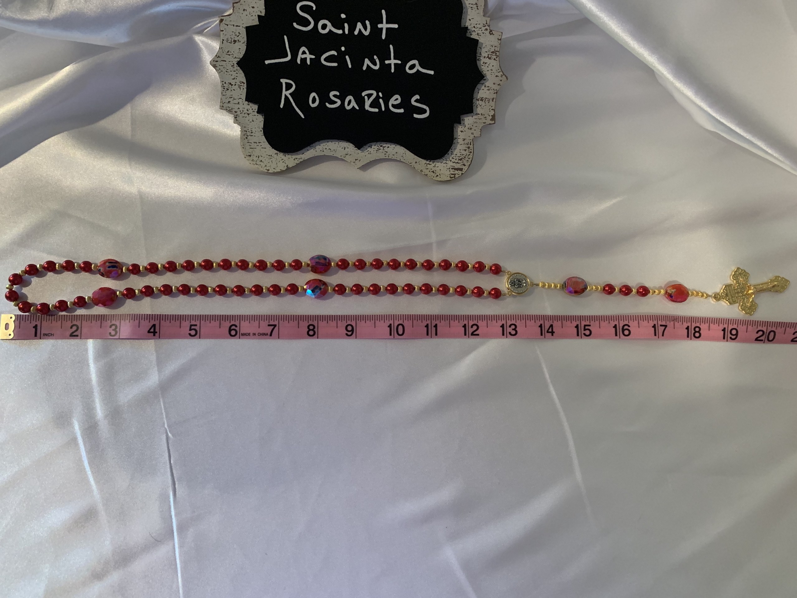 Beautiful handmade, one of a kind glass and plastic pearl bead rosary. The rosary center is a depiction of the Miraculous Medal. Handmade with love and prayer in Casper, Wyoming. I use heavy duty jewelry wire to ensure rosary is very durable.
