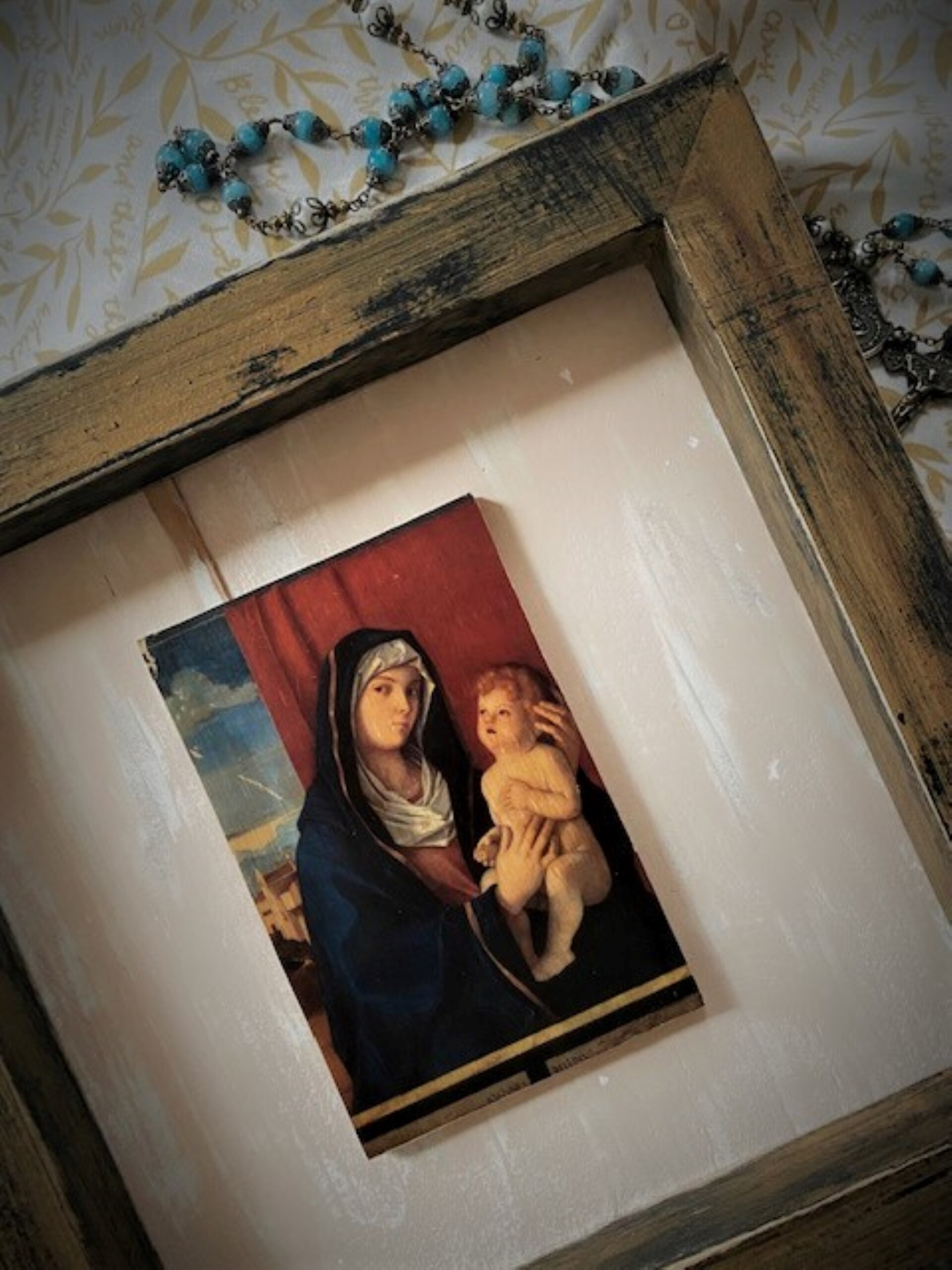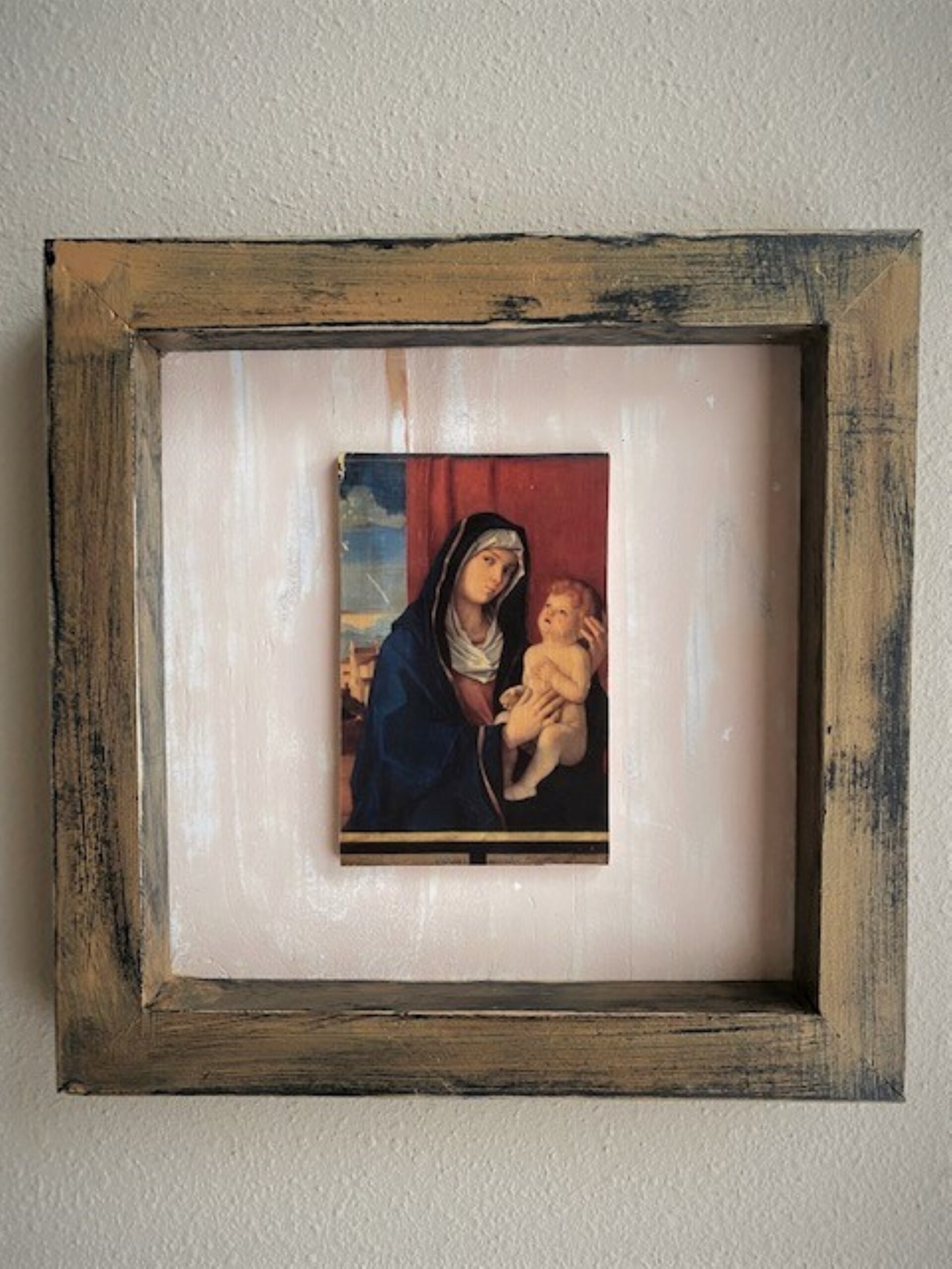 Handmade Wood Transfer of Madonna and Child by Giovanni Bellini. Catholic Wall Art.