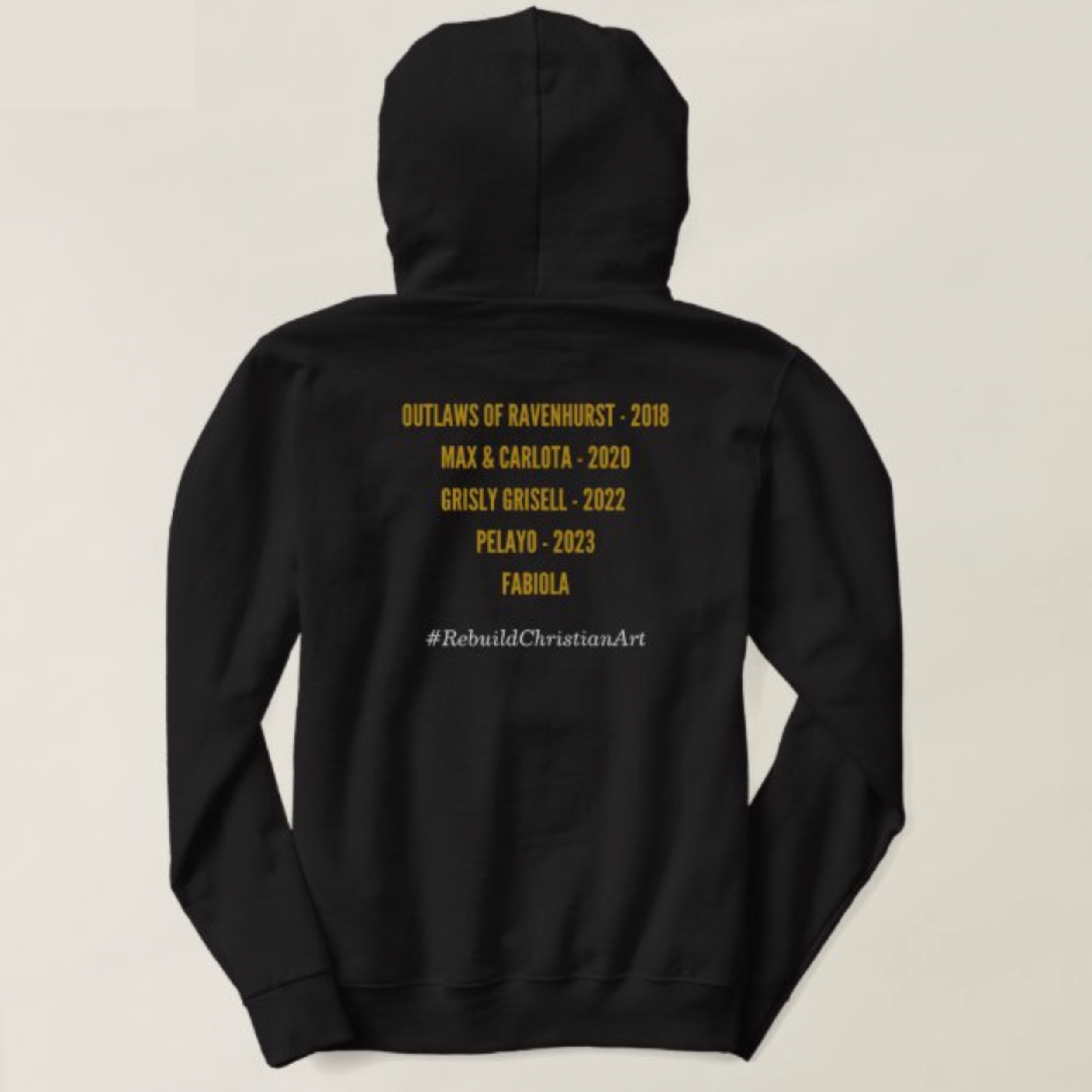 Display your love and support of Catholic entertainment with this Industrious Family Films sweatshirt! Back lists Industrious Family Films’ releases to date and #RebuildChristianArt. Please email me with your size.