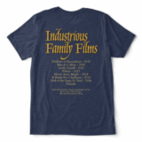 Display your Industrious Family Films pride with this t-shirt. Shirt features the Industrious Family Films logo on the front and the list of Industrious Family movies along with their release years on the back.