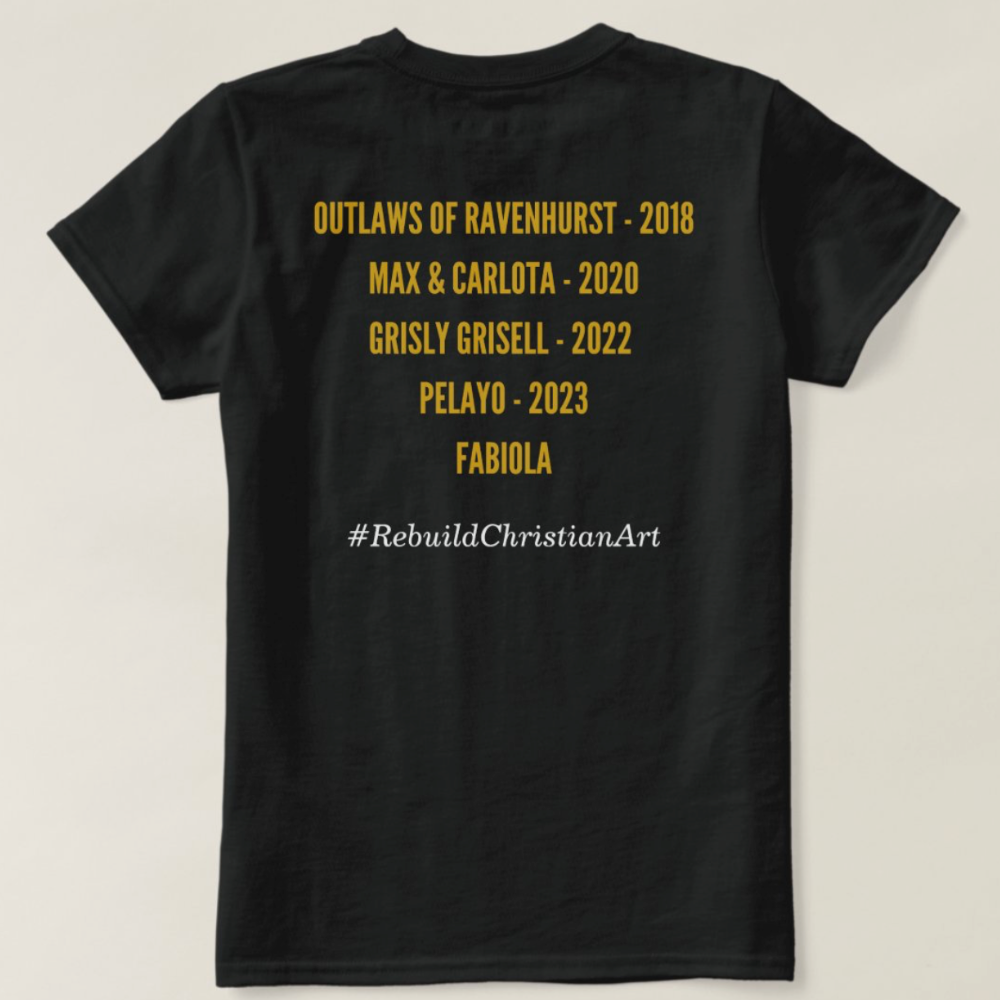 Display your Industrious Family Films pride with this t-shirt. Shirt features the Industrious Family Films logo on the front and the list of Industrious Family movies along with their release years on the back.