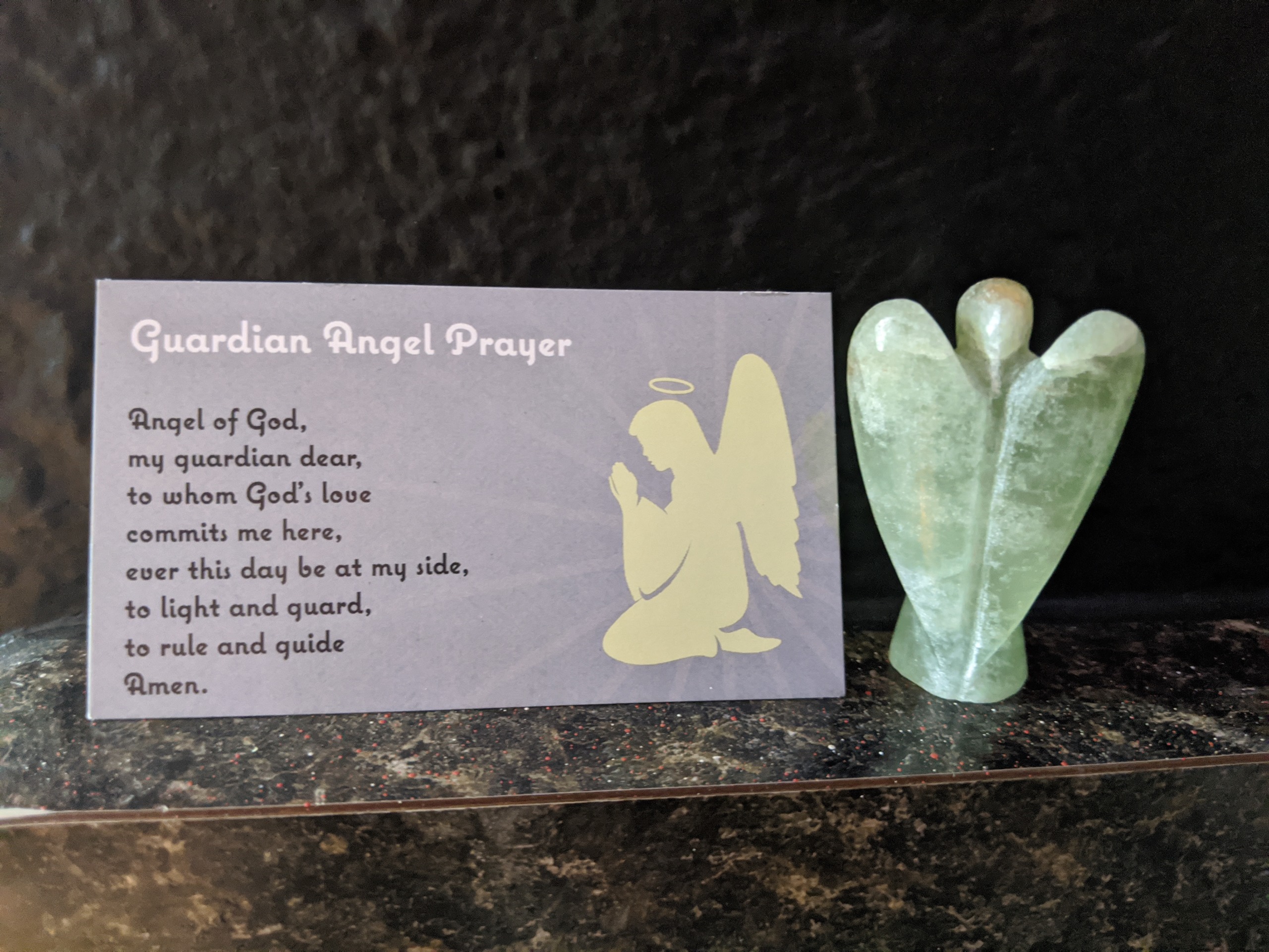 Beautiful pocket size Jade Guardian Angel and Prayer Card.