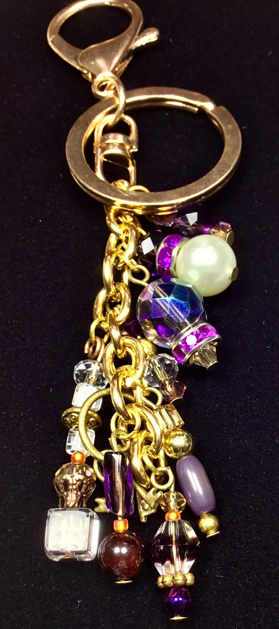 For your consideration, is a fun keychain/purse charm in purples and complementing colors.