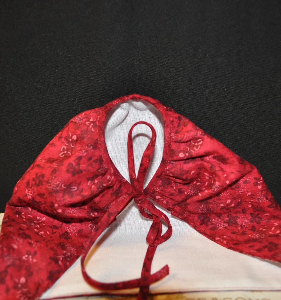 Each bonnet is hand-made, often by up-cycling scraps from other projects or old cotton blouses and dresses. Bonnets are suitable for use as a head covering at Holy Mass, and durable enough for daily play.