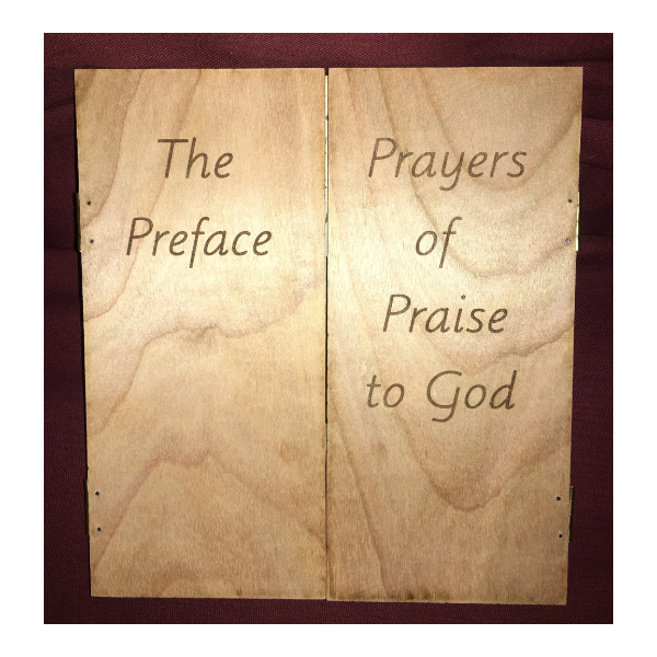 The Preface triptych for level 3 will come laser cut, with laser engraved words in each section; hinges attached and ready for use.
