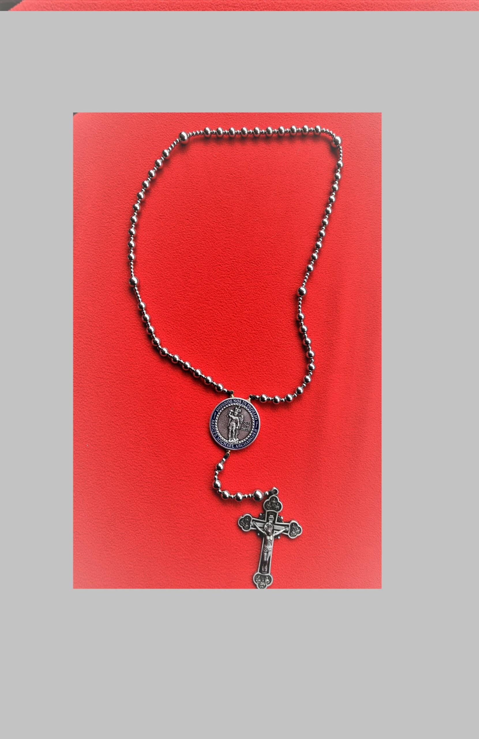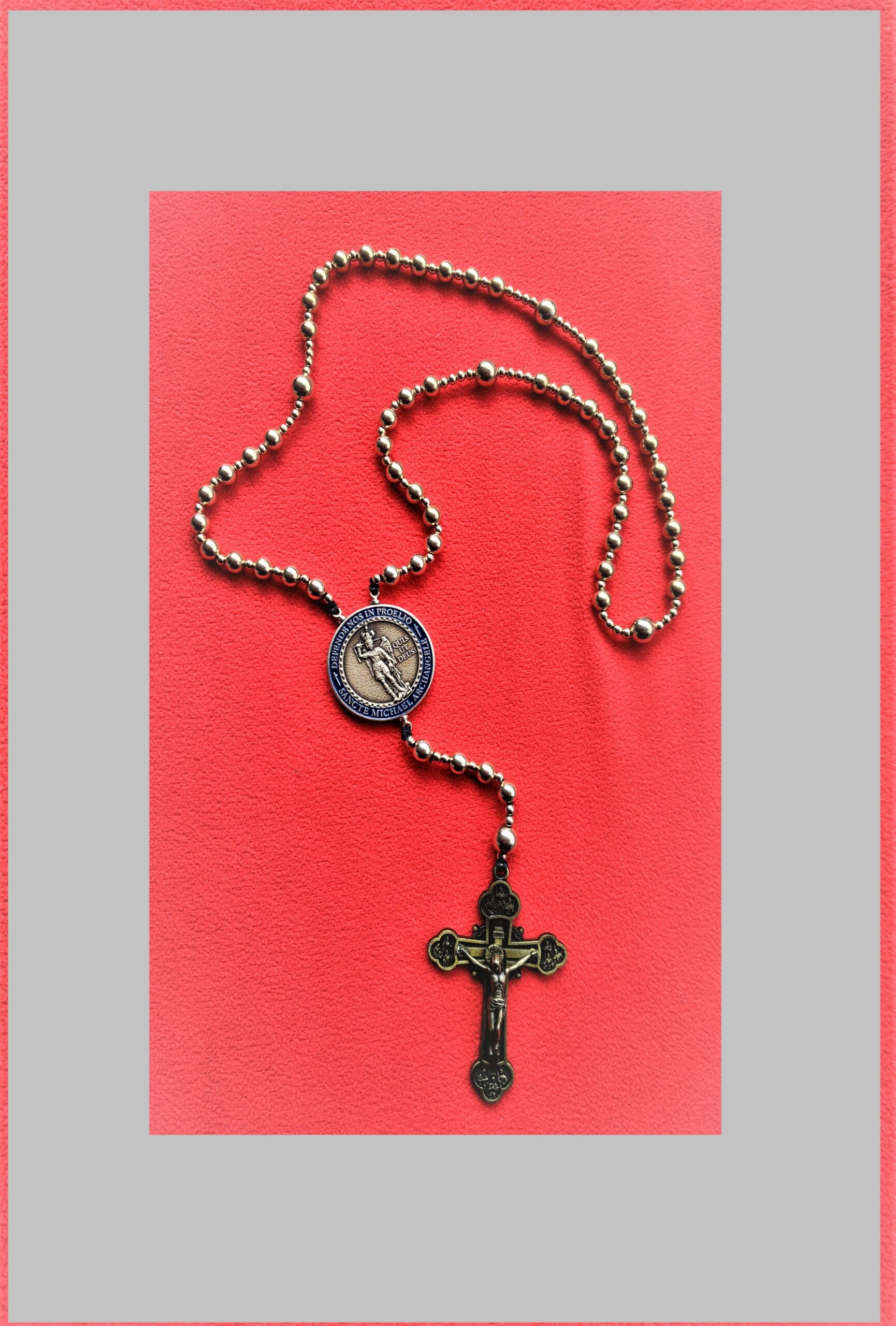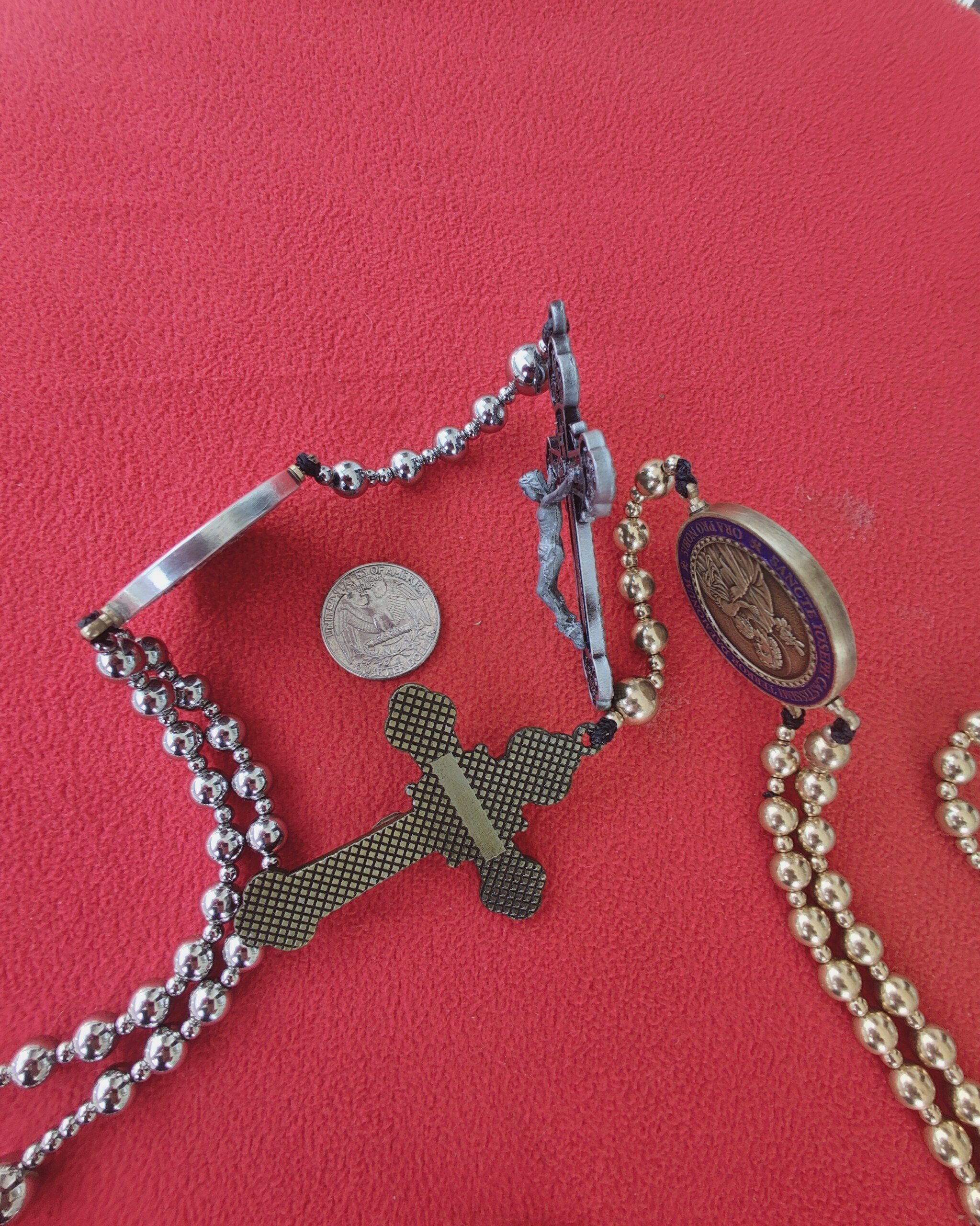 The crucifix of the rosary was made of foundry zinc alloy, beads of non-magnetic steel, and the Kevlar rope, which makes this Rosary practically impossible to break.