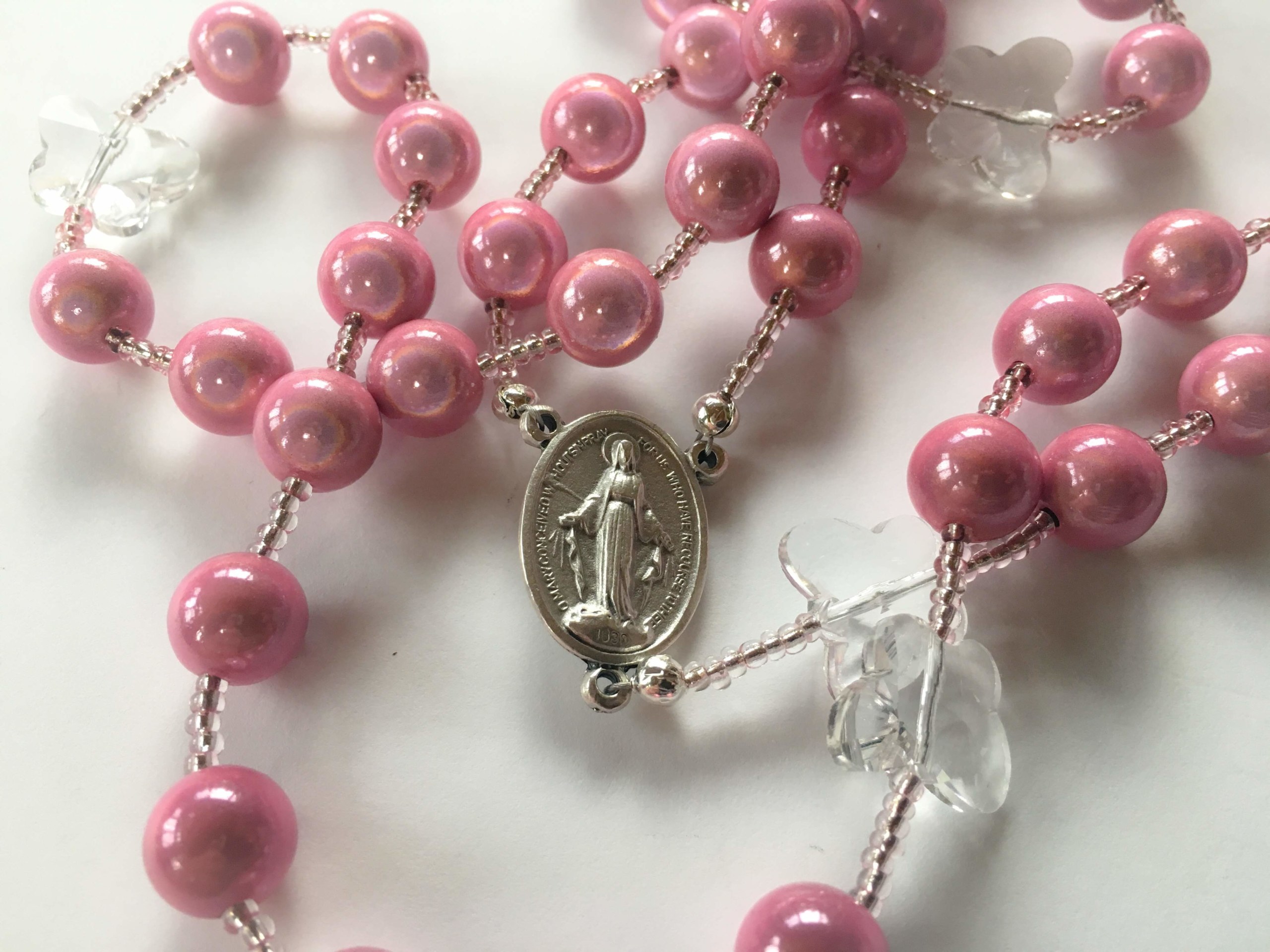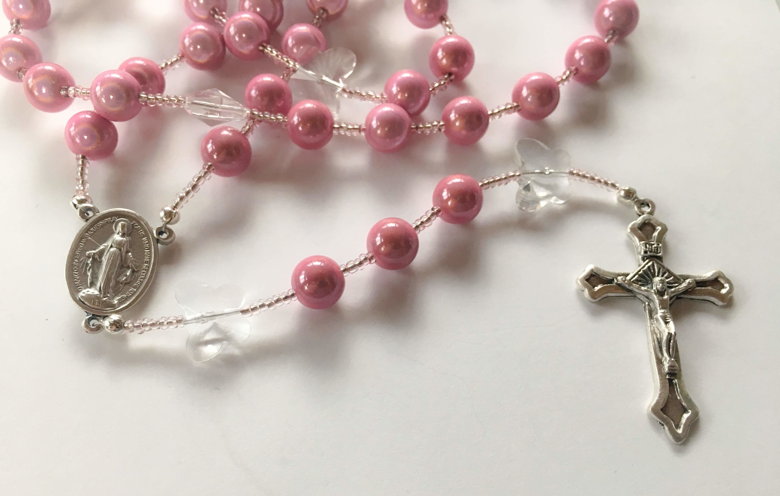 The Miracle of a Daughter rosary was created in thanksgiving for the goodness of daughters, whom we pray for those living and those who have gone to heaven before us. Consider this stunning rosary for any mother of a daughter in your life, or as a gift for yourself “from your little girls.”