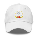 Inspired by the Miraculous Medal, this hat has a low profile with an adjustable strap and curved visor.