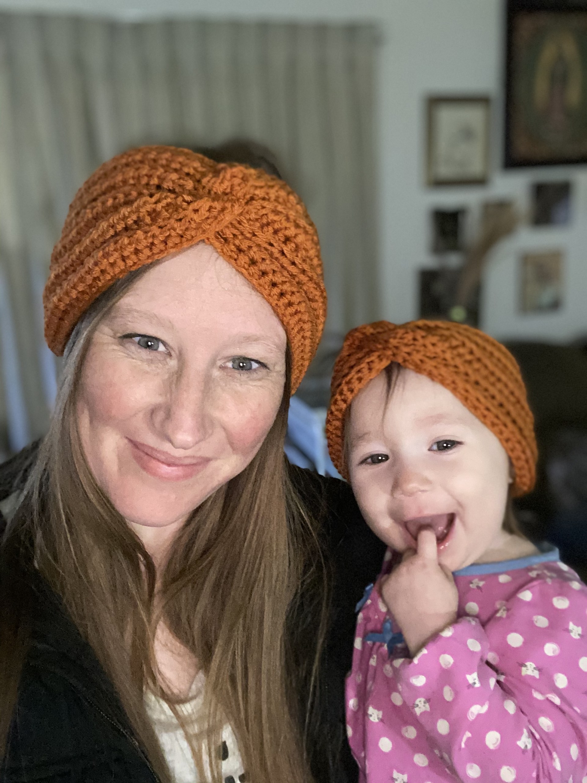 This mommy and me pumpkin ear warmer is perfect to finish up that matching outfit!