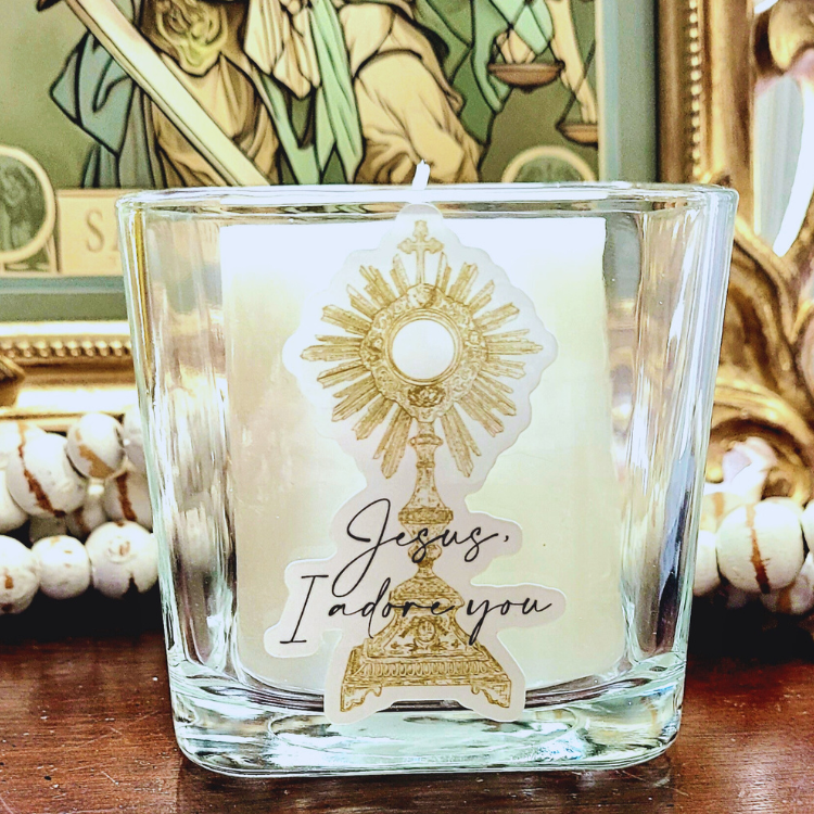 Monstrance Candle Holder – “Jesus, I Adore You”
