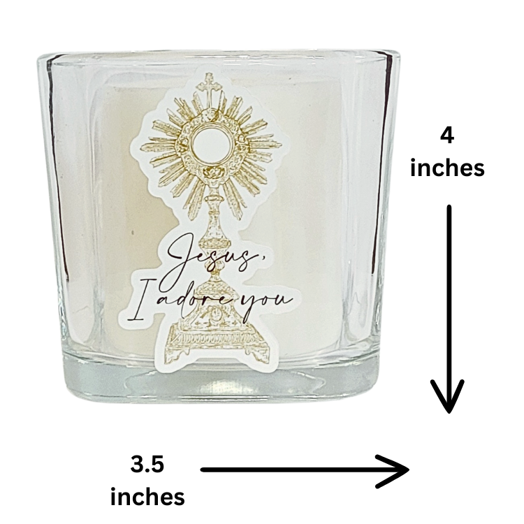 Invite the grace and peace of Jesus in the Holy Eucharist into your home with this beautifully designed glass candle holder. A powerful symbol of love, faith, and hope. This candle holder is perfect for personal prayer, meditation, or enhancing your devotional space, radiating reverence and peace.