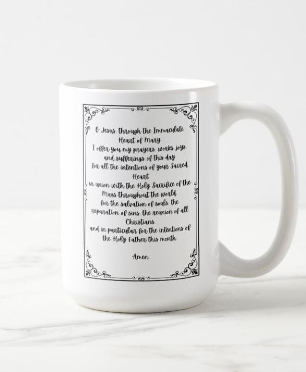 Start your day off with coffee and prayer! This Morning Offering mug is perfect for sipping on your favourite hot morning drink and spending time meditating on those little “pinpricks” we know make up our every day. Offer them up to Our Lord first thing, put on your armour for the day, and know He is with you every minute through all the small (and BIG) annoyances!
